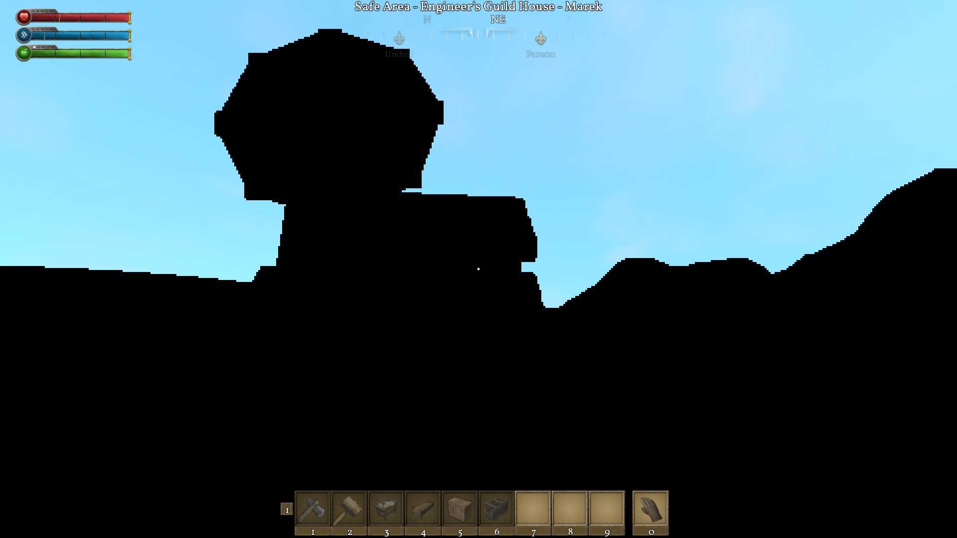 After downloading and starting the 0.7.1 major update for the first time, the ground and blocks were all black at the Engineer's Guildhouse in ME. I was able to smoothly move the character around but only the sky had a light blue color.