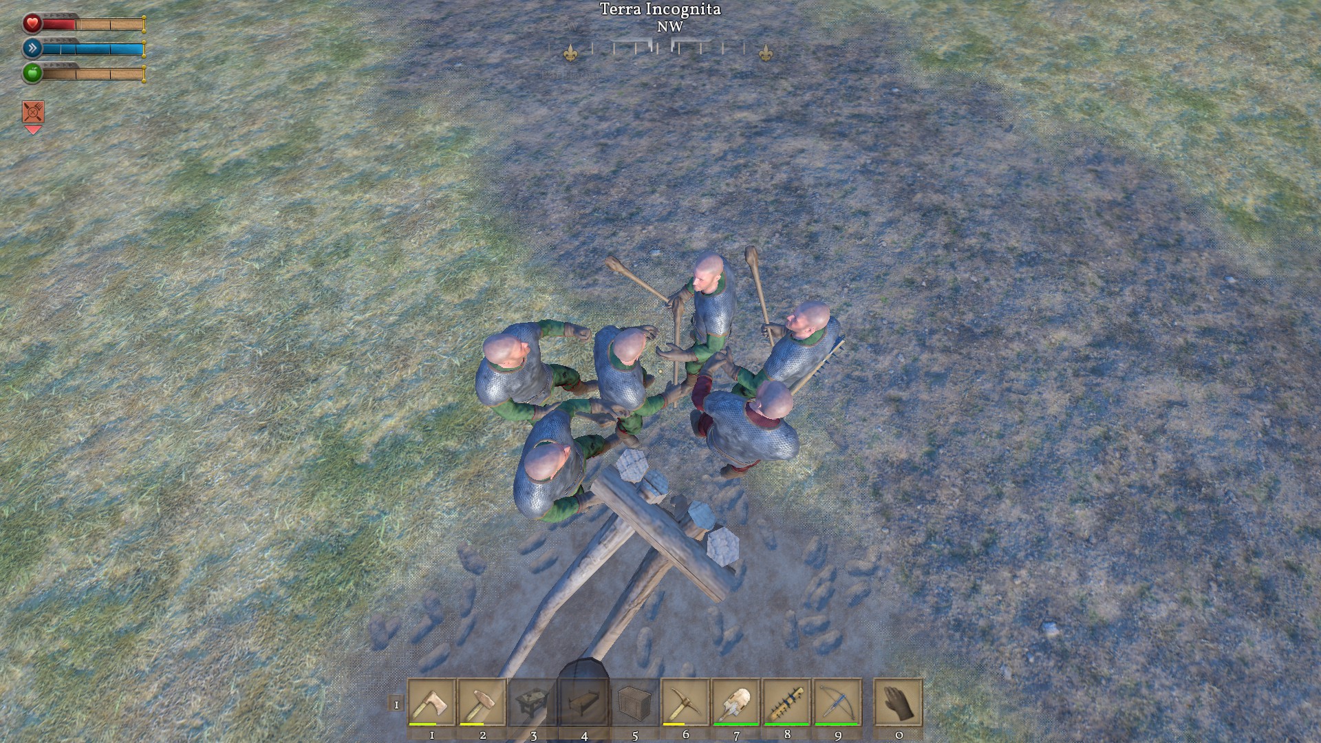 my problem is the volume of barbarians attacking my regular one stone block wood door during the early part of setting up a new claim on a new server (or since 0.7 all single doors are vulnerable!). the studded club and rusted sword barbarians do damage to those doors, and the new repair system means i need to keep the exact components to repair that (metal pieces, stone, sticks, and a hammer). its a rather laborious and problematic defense now keeping a single frame door up... a couple of times the barbarians took that door down to almost complete destruction - to the point you could walk around the wood door part! so this inspired me to do better than just a single door and constantly running to protect or repair it - we all do but usually it takes a couple of hours at least on a new server before you can put up the big gates... for me it's the Wooden Portcullis that is key to the new 0.7 aggressive barbarians i love so much.