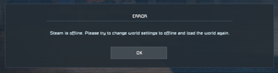 Steam went offline, tried to load an offline world, the game told me steam was offline and to try the offline setting.