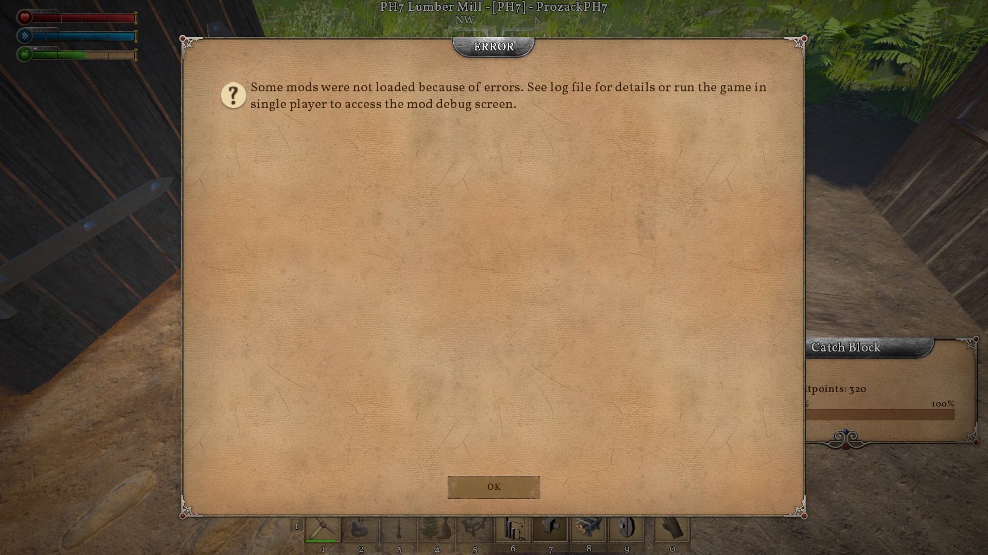 When connecting or disconnecting a catch block on a small grid I get the error in the picture.