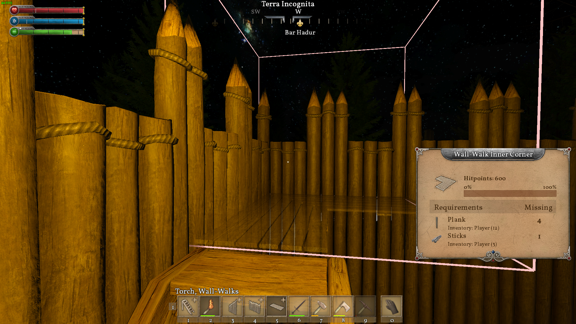 Bug 2: Wall-Walks are completely messed up. At least when I use them with Palisades. You can place straigth Wall-Walks crossed on the same place, Inner Corners refuse to work as they should be working. Probably mountpoint issue, but I'm not sure. That doesn't explain the 2 blocks in one place bug.