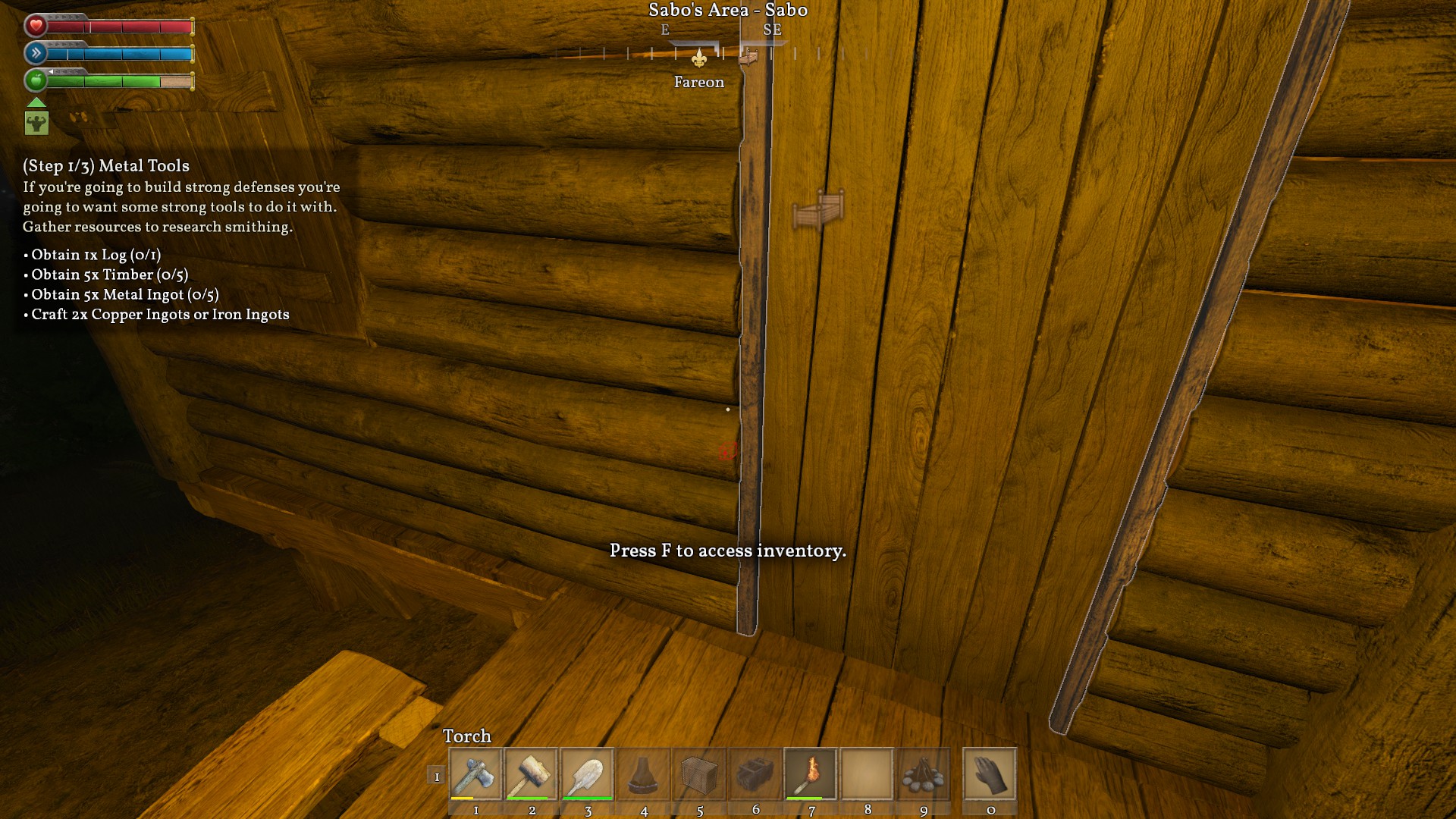 Log doorways showing access to inventory and after pressing F the ui opens inventory.