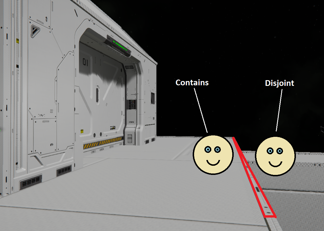 The WorldVolume property of the Frostbite Gate is too big. It's a problem when trying to check if an entity is inside the gate or not in the programmable block. In the case of this door type it will still return Contains even if the entity is around two whole blocks away from the gate.