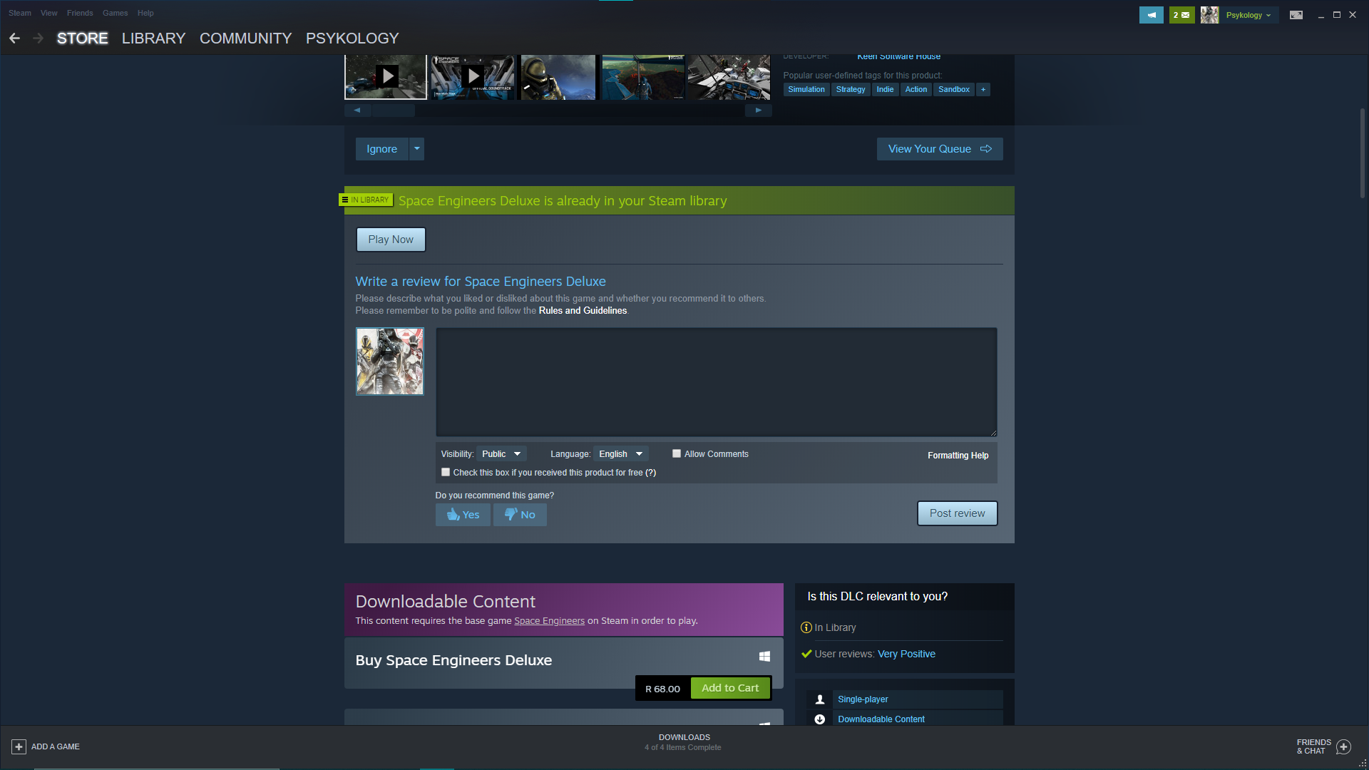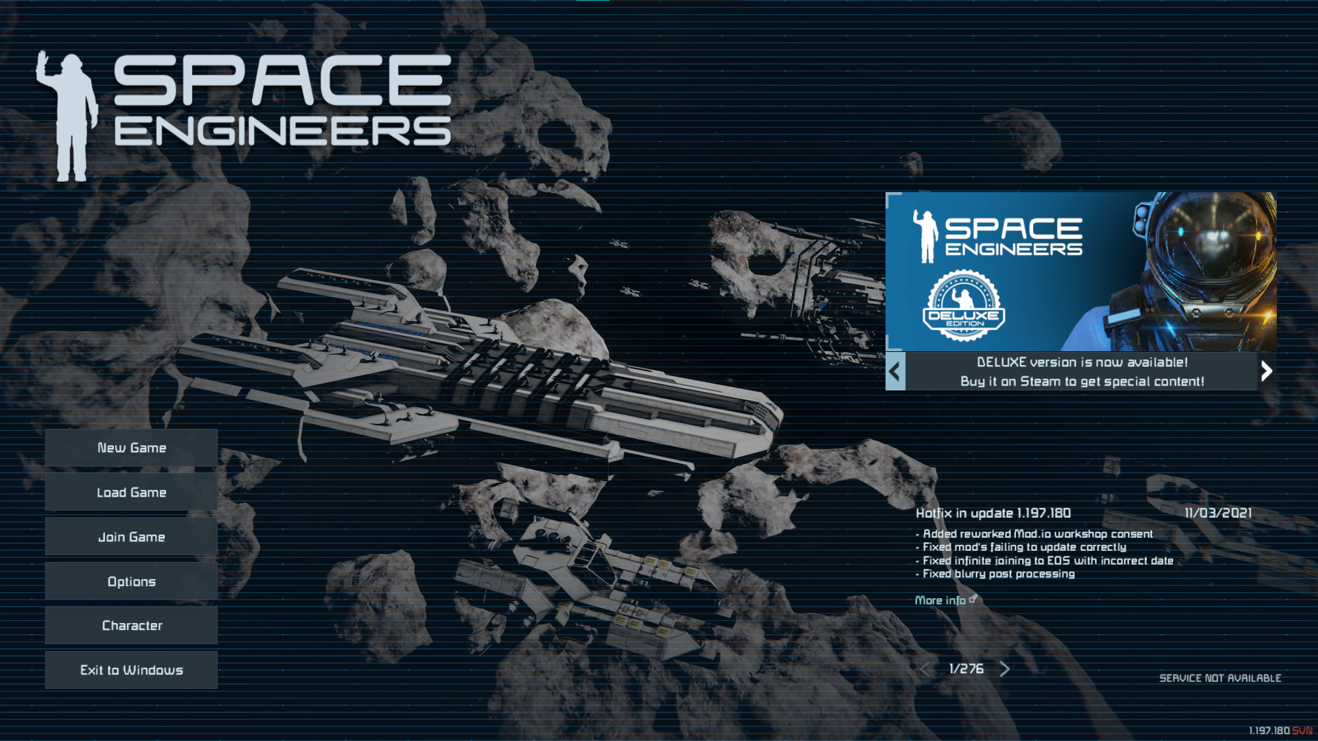Something in the latest hotfix has gotten SE to run properly on my PC (v1.197.180), The issue im having now is that space engineers is not seeing any of the dlc i own, and appears to not see that i have any internet connection (even though opening the workshop through the game works perfectly fine), as when i attempt to access character options or to join a game i get the error message "{0} is offline. please run {0} in normal mode or restart {0} if the problem persists"