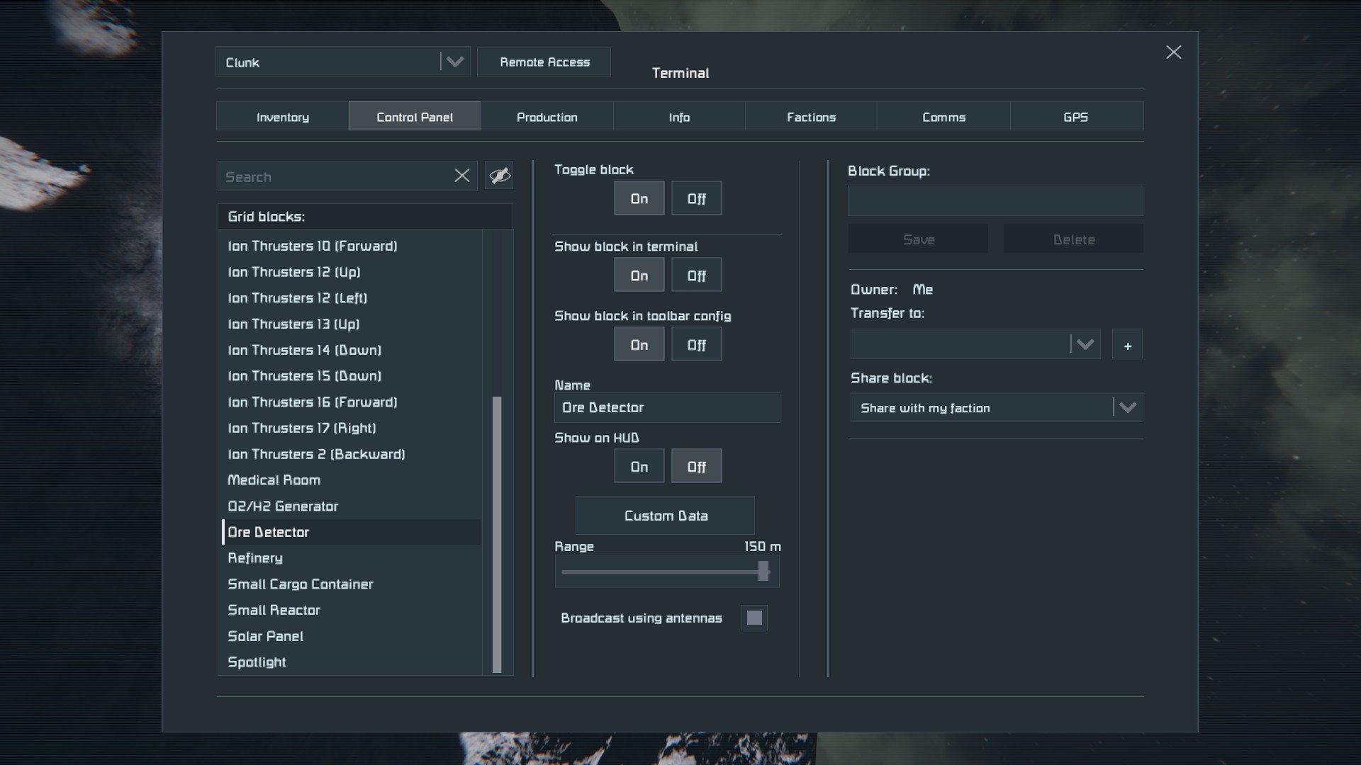 Then I modded LG Ore Detector to 2500m, set it to same value in terminal screen and tried again.