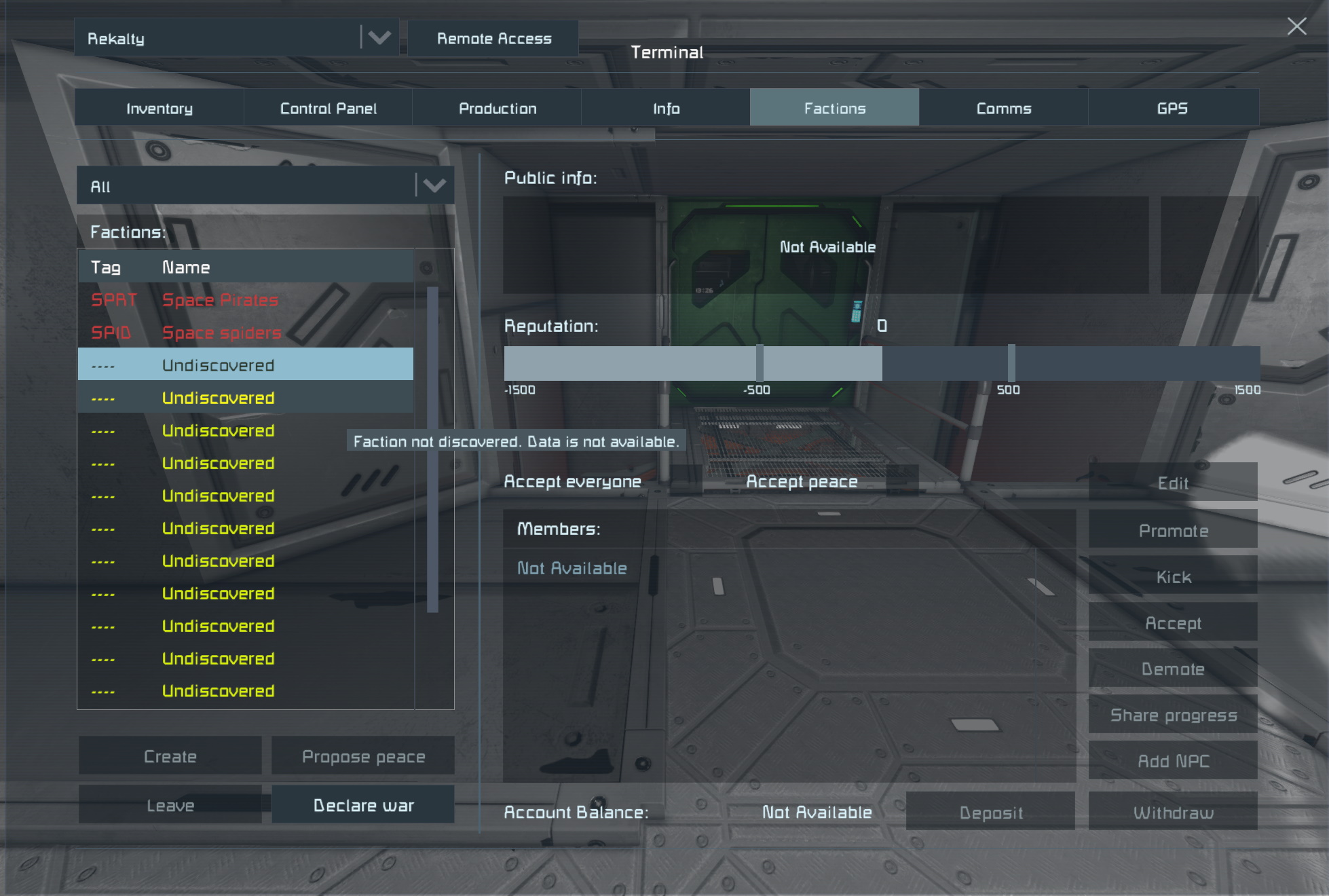 Ever since the Heavy Industries (v1.199.20) update, I have been unable to discover new factions. I started a new game after updating the game, and soon realized that all factions besides Space Pirates and Space spiders remained "undiscovered", even though I had found the stations of a couple of factions, and encountered several ships/encounters of others.