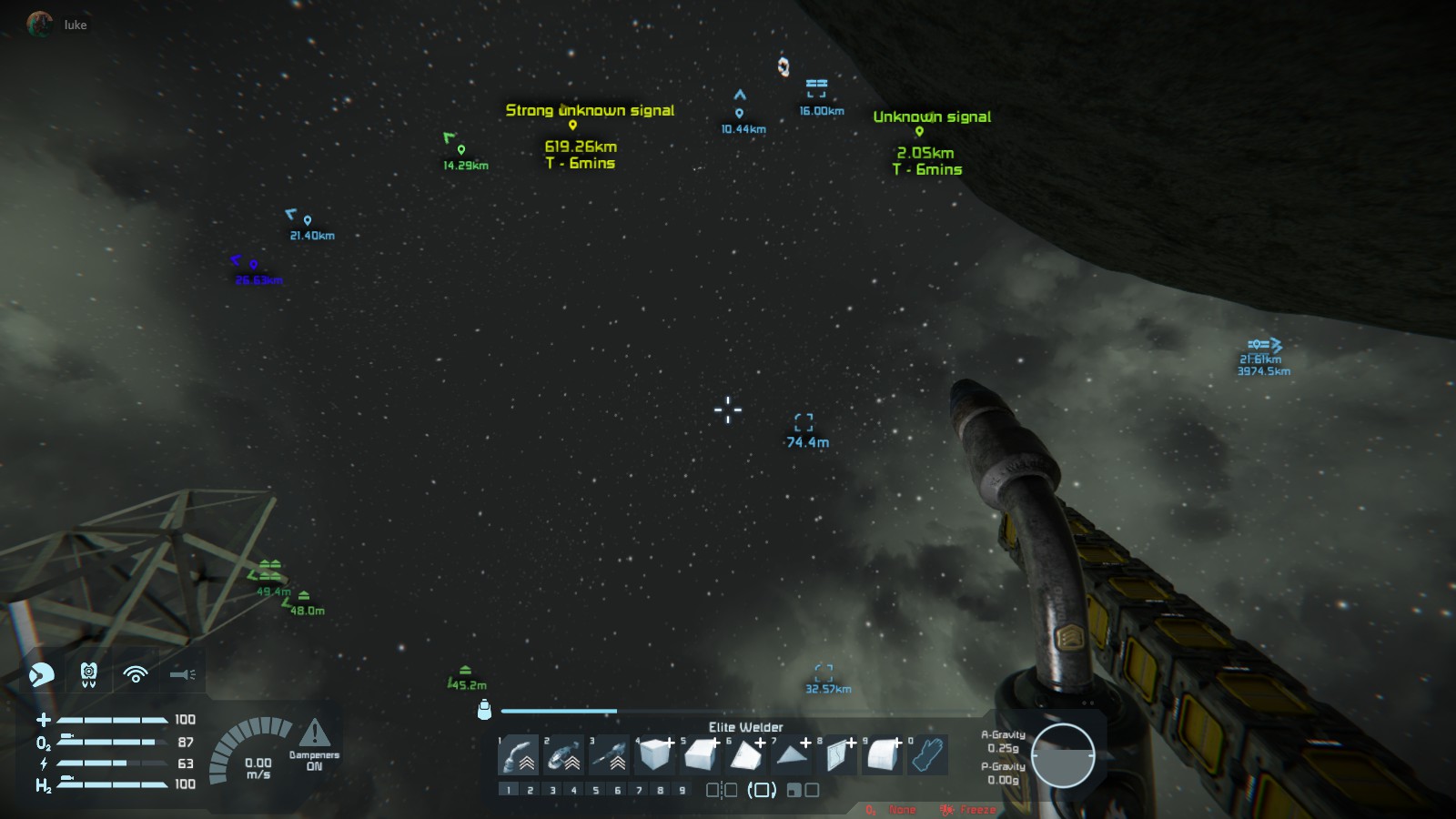 1) There is a very loud clang noise as though the ship was hit by something, but there is nothing else around but a static asteroid.