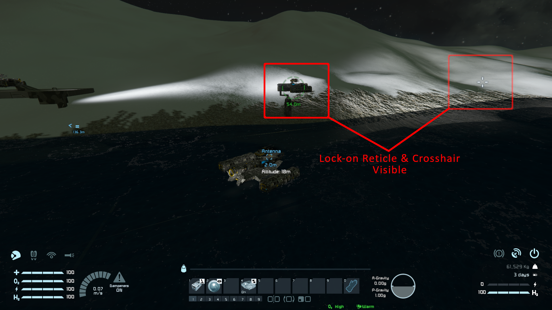 With the Broadside update, I was expecting for the reticle to remain visible as it doubles as a pipper / gun sight but it turns out that you need the crosshair to have a visual indicator of a lock on.