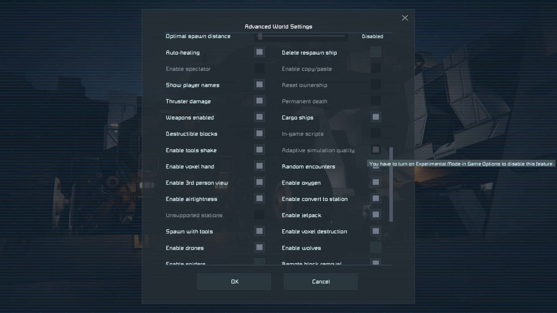 experimental mode in single player locked a setting on