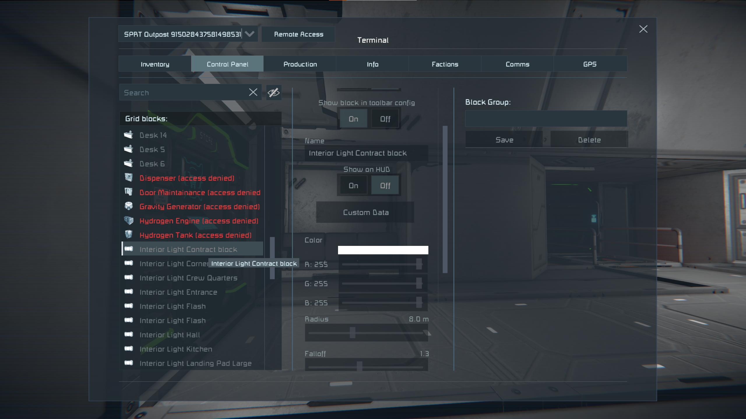 Steps to reproduce: enable hidden blocks and choose the lights. Also able to edit the block names as well as custom data for the blocks.