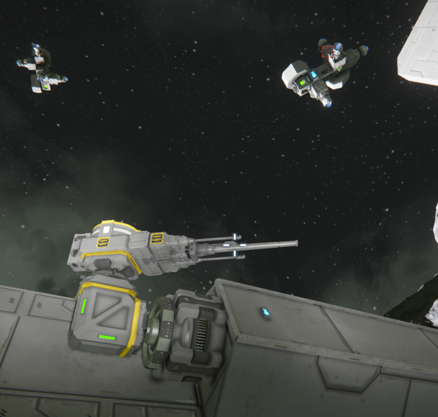 Simply fly around the turret, and it will get stuck, even though it could reverse and shoot you (which it will do if you go around it in the opposite direction). It can actually shoot you everywhere around it, but when it reaches the rotor limit it gets stuck instead of turning around and going to the second position which can reach the target.