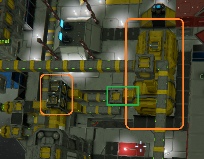 If you would delete the highlighted conveyor part, you can try yourself that you are no longer able to move the components in between cargos, thus making really two separated conveyor systems.