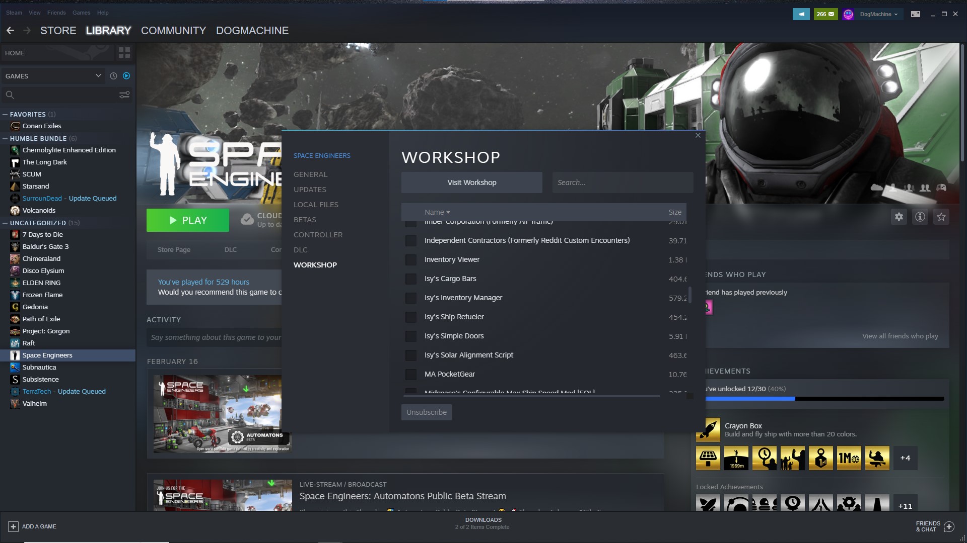 5) Ever 10 new mods I start the game, verify all new blocks are present, save, exit Space Engineers