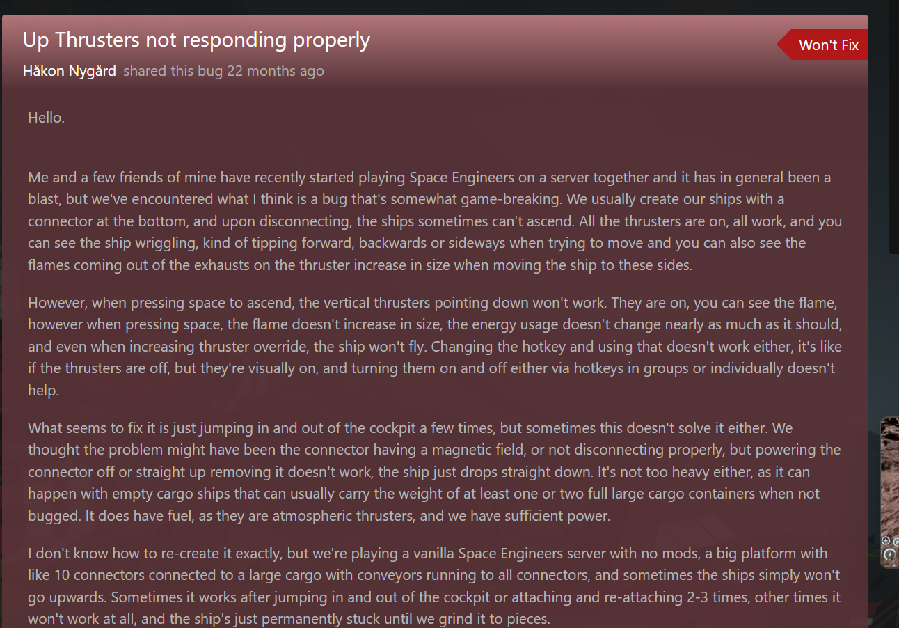 22 months ago a fellow space engineer seems to have glitched upward thrusters and i have seemed to have encountered the problem as well