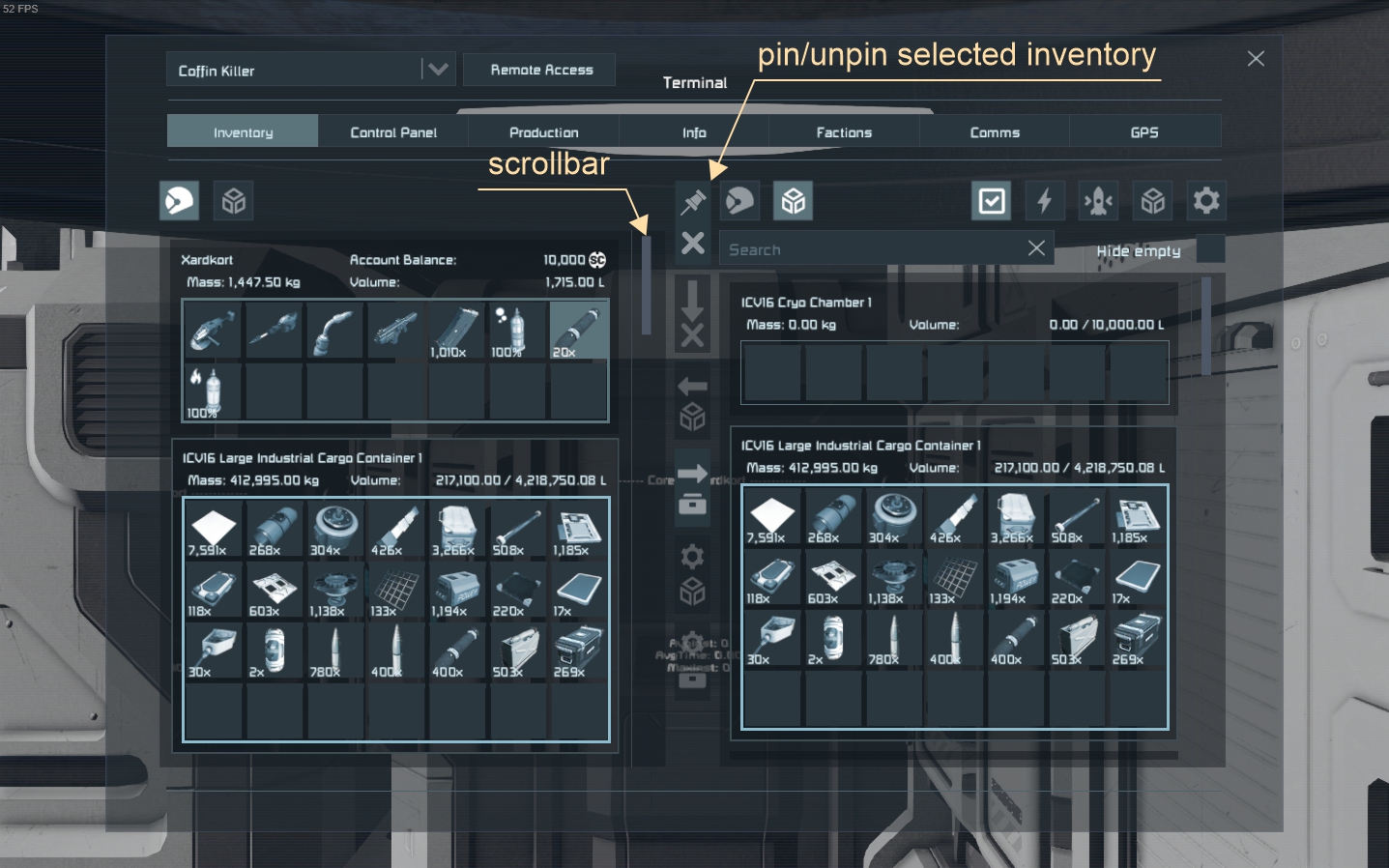 I'm guessing you're basically thinking of customizable inventory shortcuts/links/cards, placed in the empty space under your personal inventory? Because that's a great idea!