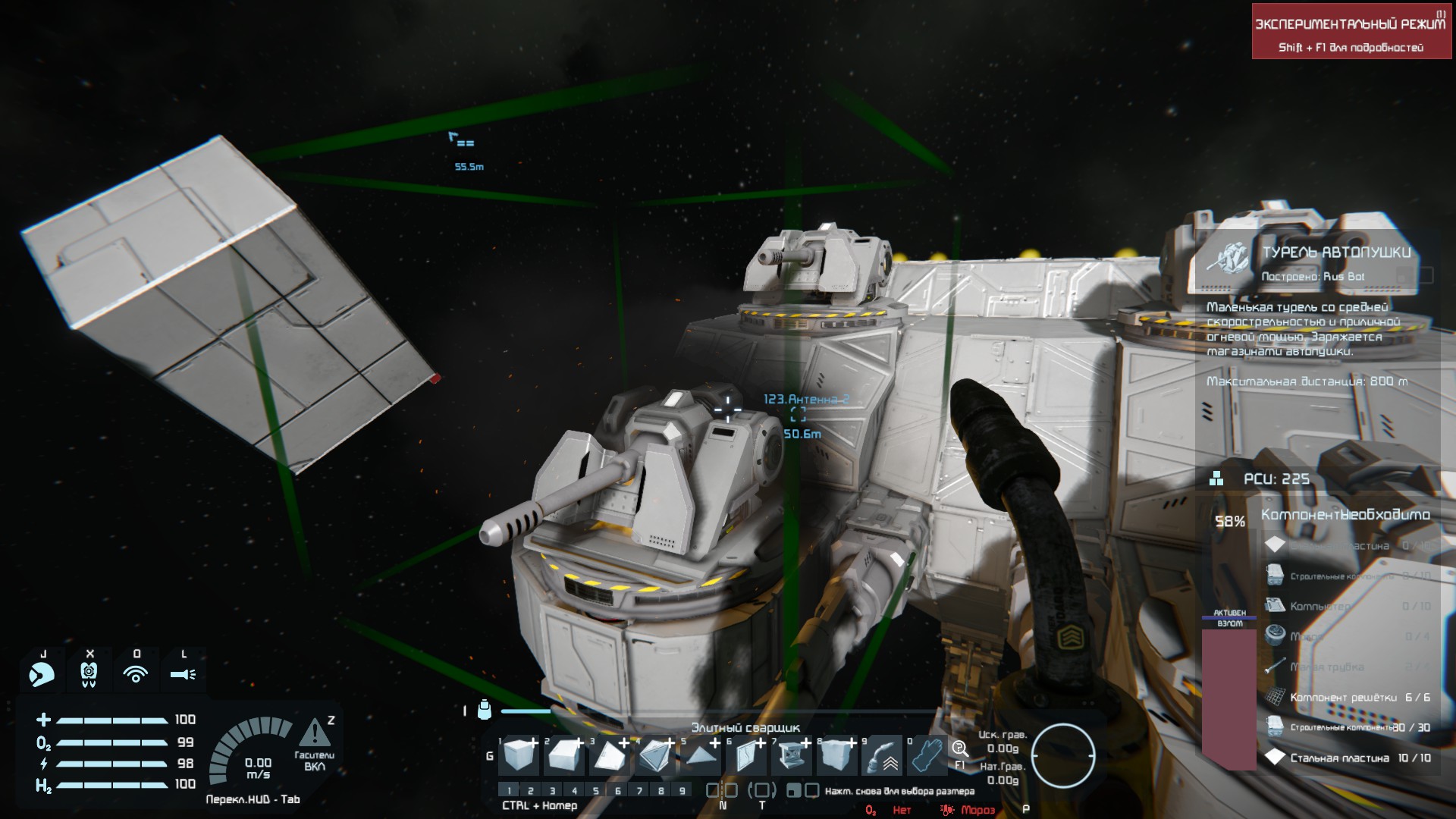 The hitbox of the autocannon turret goes beyond the 3D model, which is why it is impossible to put the turrets in tandem.