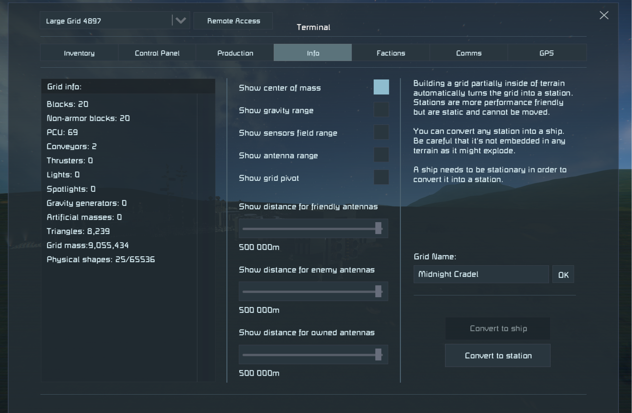 I am having an issue with a ship I had created. The ship would not respond to regular flight controls and would only lift off when Overriding Thrust. There is also issues in my Info panel with the ship showing very little Blocks and PCU but the Triangles are very high instead. I have attatched a screenshot of the Info panel. Any information would be helpful, thank you for your time.