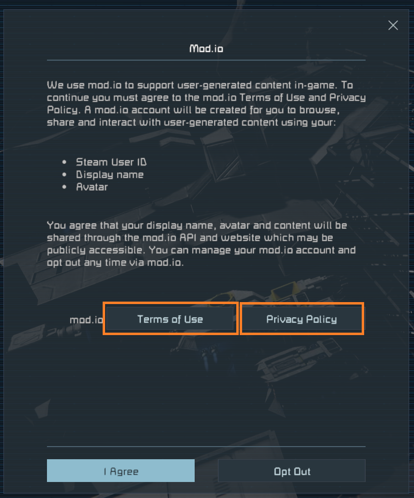 As i said it has something to do with the GDPR Consent. i dont really know what that is but as far as i know/understand has it something to do with the EU privacy rules. But not the Consent is the Problem. its the "GDPR Consent Updated". If that is set to false it askes me to accept or disagree the Consent. And if i dont Accept or disagree it every time i start the game i cant use mods from mod.io. And there it doesent matter if i try to join any Multiplayer Server or try to download mods in singleplayer. Mods from mod.io wont work if i dont get the message every time the game starts and i accept or disagree it every time