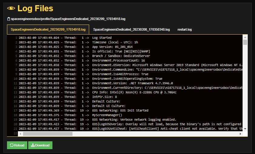 and these are the logs i got access to in the Log Files tab: (attached as "Log Files")