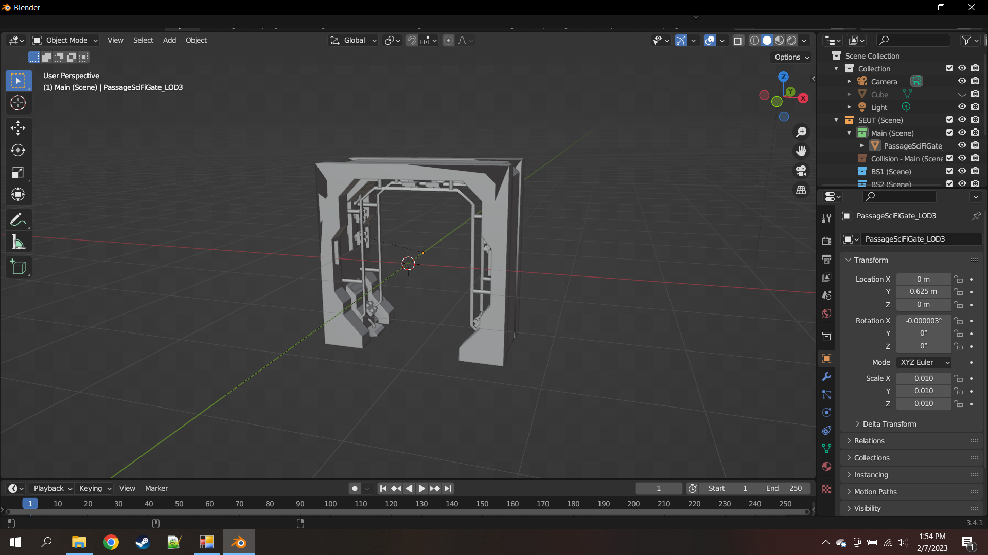 Hello, I recently came across an issue related to one of the Passage 3 Frame's LODs. I've discovered that the 3rd LOD model looks broken. The screenshots I've given show the model in Blender and in game. Playing on low graphics makes this issue most noticeable.