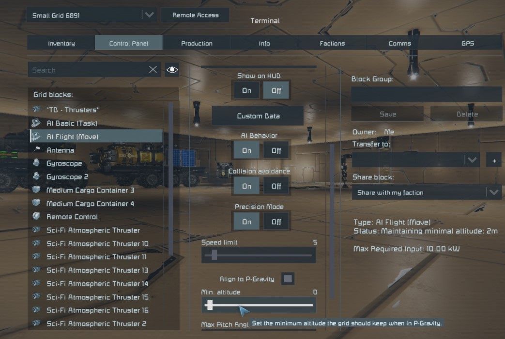 I've discovered that when building an AI drone with the AI Flight (move) and AI Basic (Task) modules underground (negative altitude level), the drone will automatically bang itself on the ceiling of ones underground base.