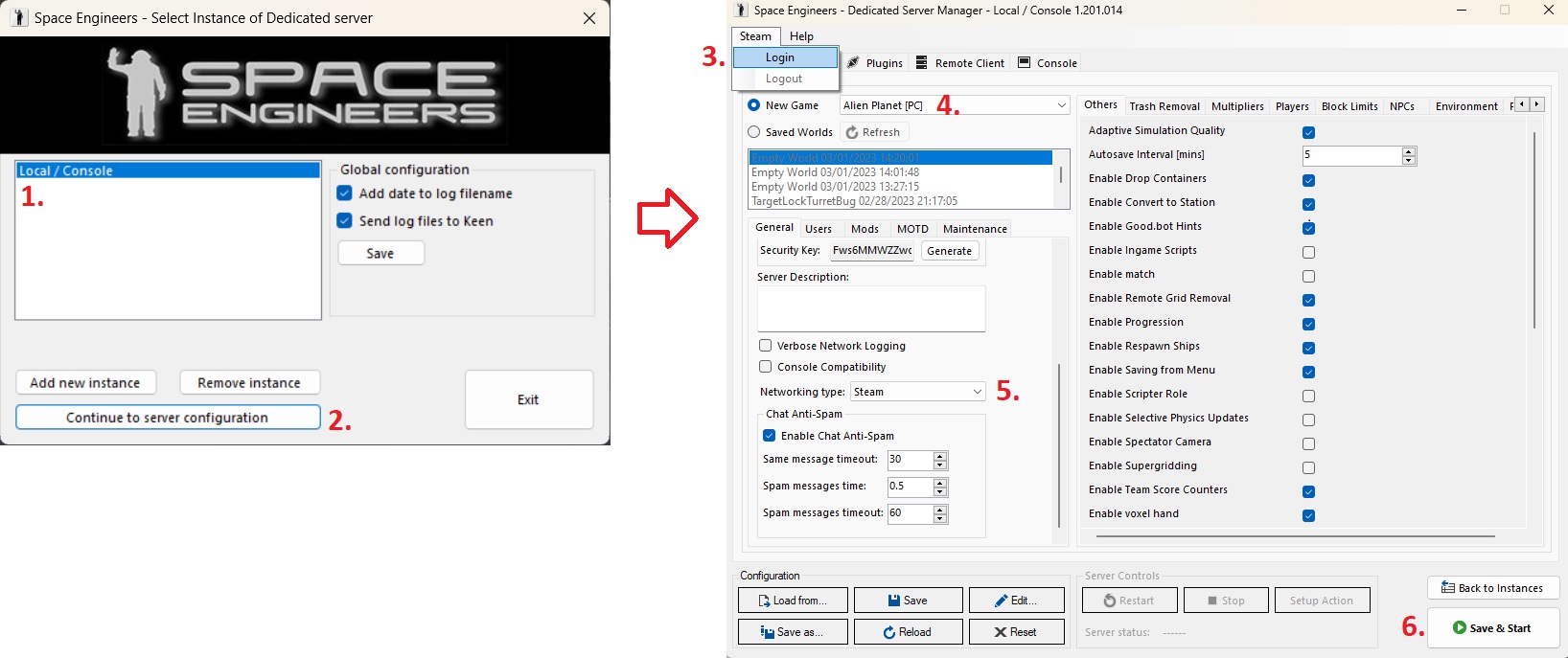 • You can access your log files by typing %appdata% into your Windows search bar and you will be redirected to the hidden Roaming folder. After that just follow: \Roaming\SpaceEngineersDedicated.