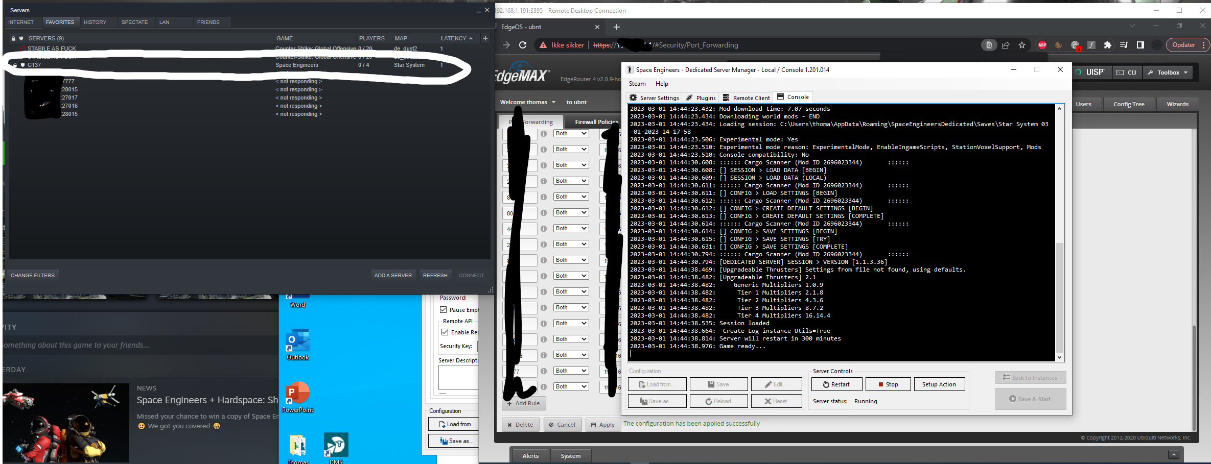 i launched the server and every thing is going great, it said game ready. but when i go over to my pc and try to join the server, i get no response either from connecting publicly or locally i have opened the original port thorugh port forwarding 27016, ive changed it to 27021 to test but just switching the port isnt working and i cant seem to see the problem, the log files dont show any signs of errors.