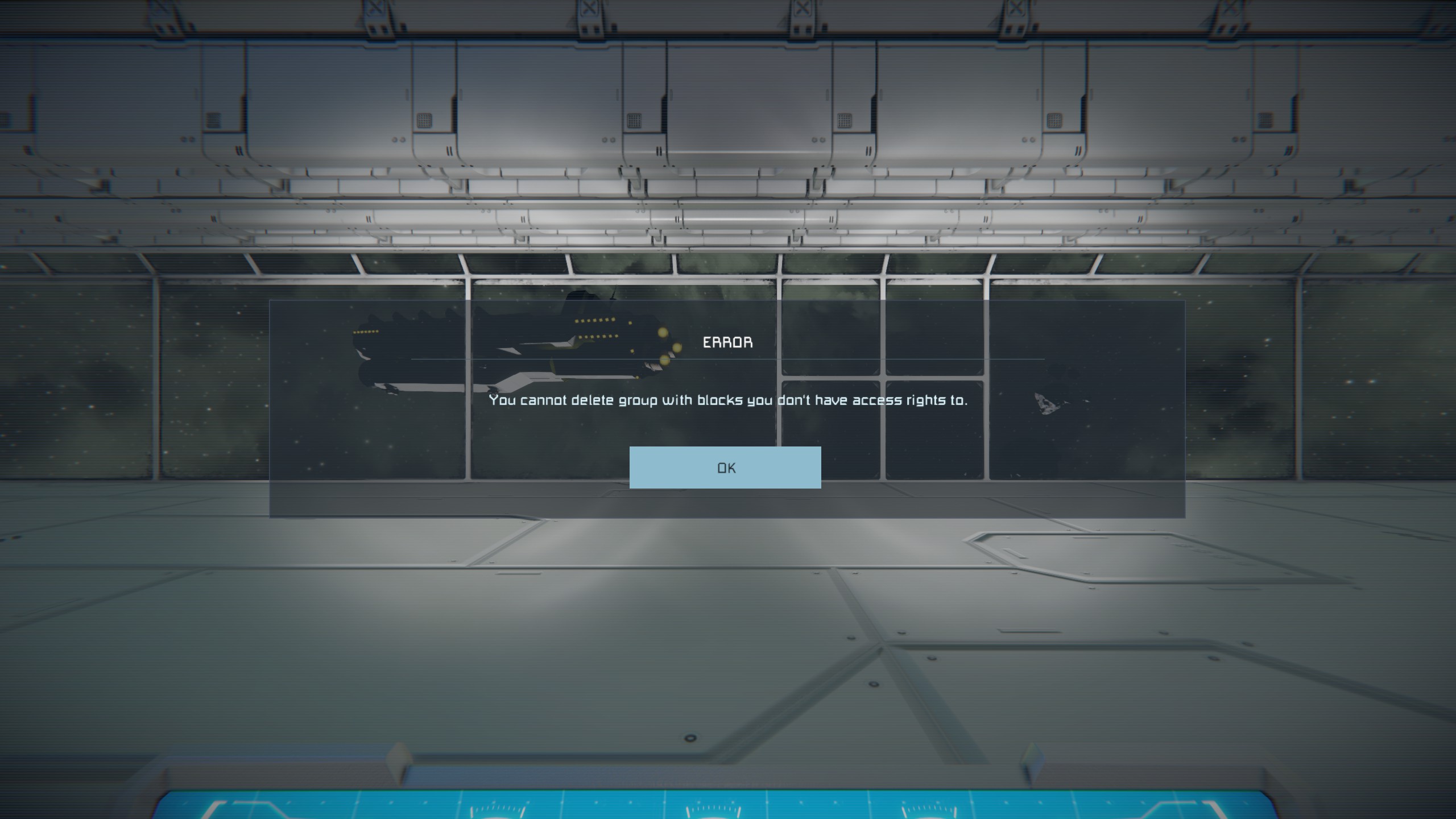 When my friend crashed a ship into my ship me and him were welding it up and I was placing the blocks to fix it up and then after I was not able to delete the group with the hangar doors or add them