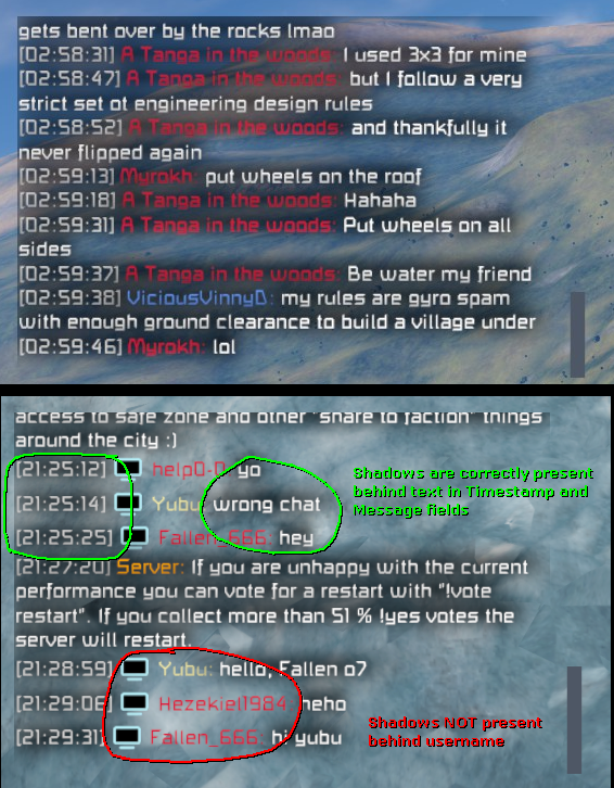 Before the whole message had a shadow to provide contrast against bright backgrounds. This update somehow strips the shadow from the username part of the message but the rest of the text is fine.