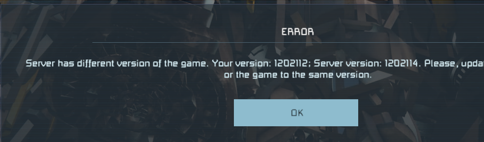 "Server has a different version of the game" When trying to connect to official server