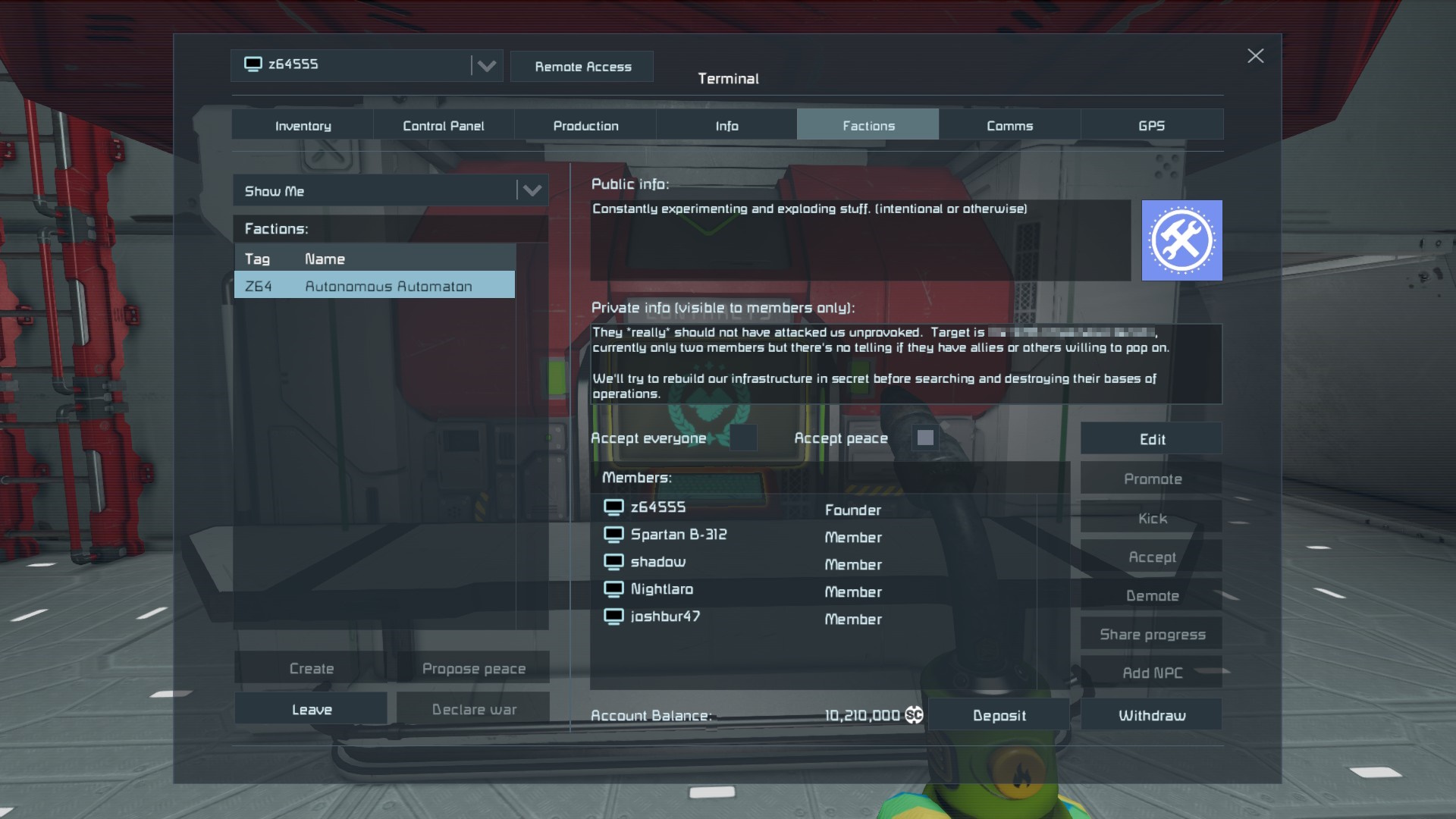2749 is my faction that I am in. (Censored enemy raider faction name as a courtesy)