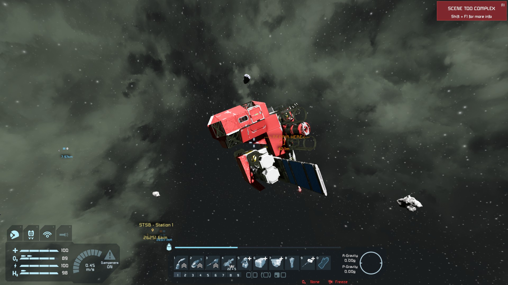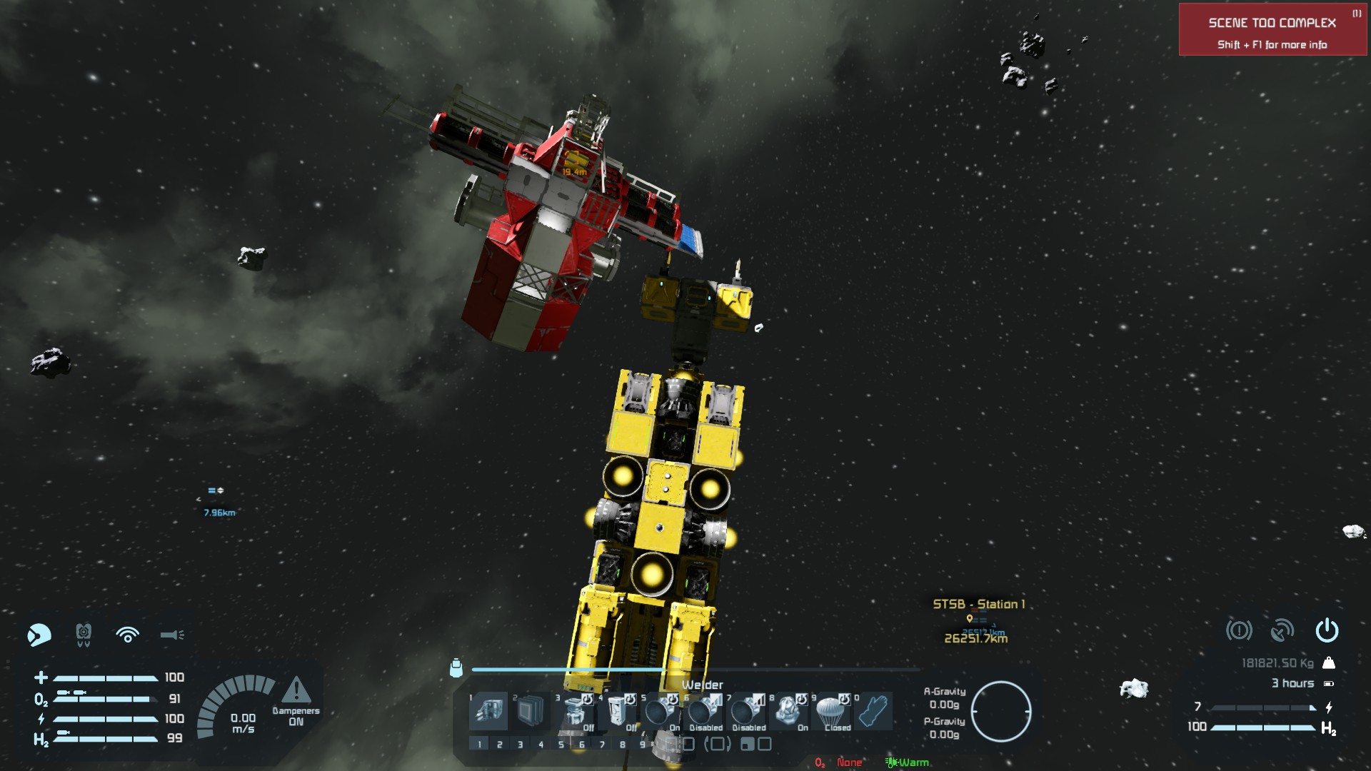 2557 shows the ship I used to do the block welder tests. As mentioned before, the block welders actually could do the full repair, while the welder tools could only go to below the functional line