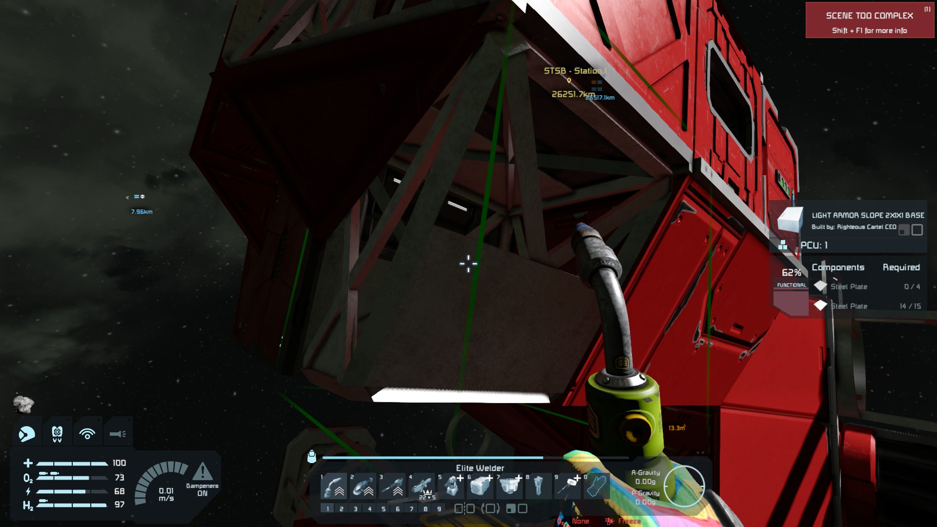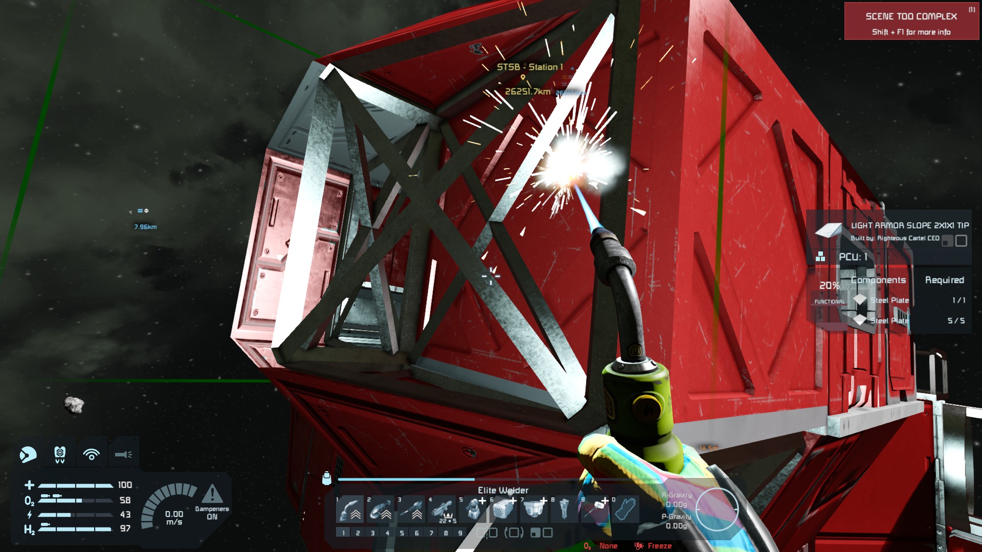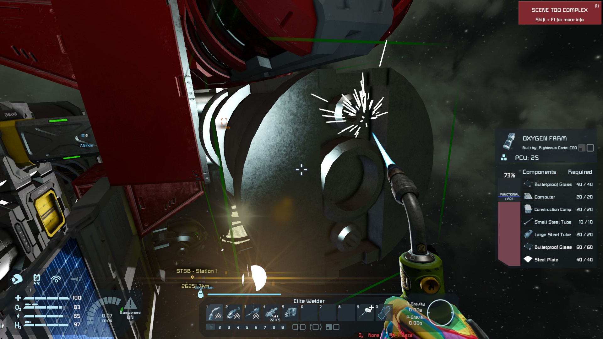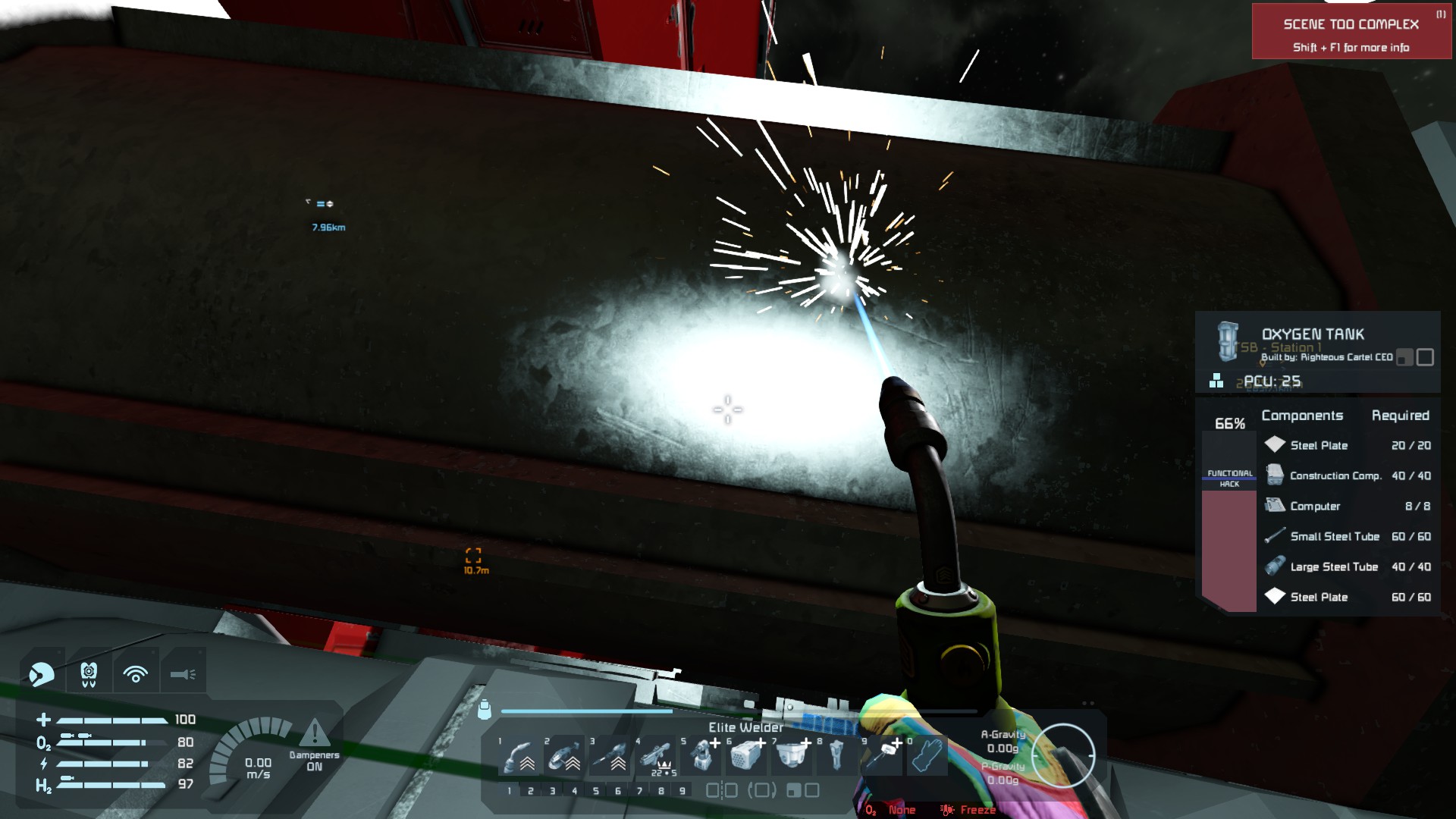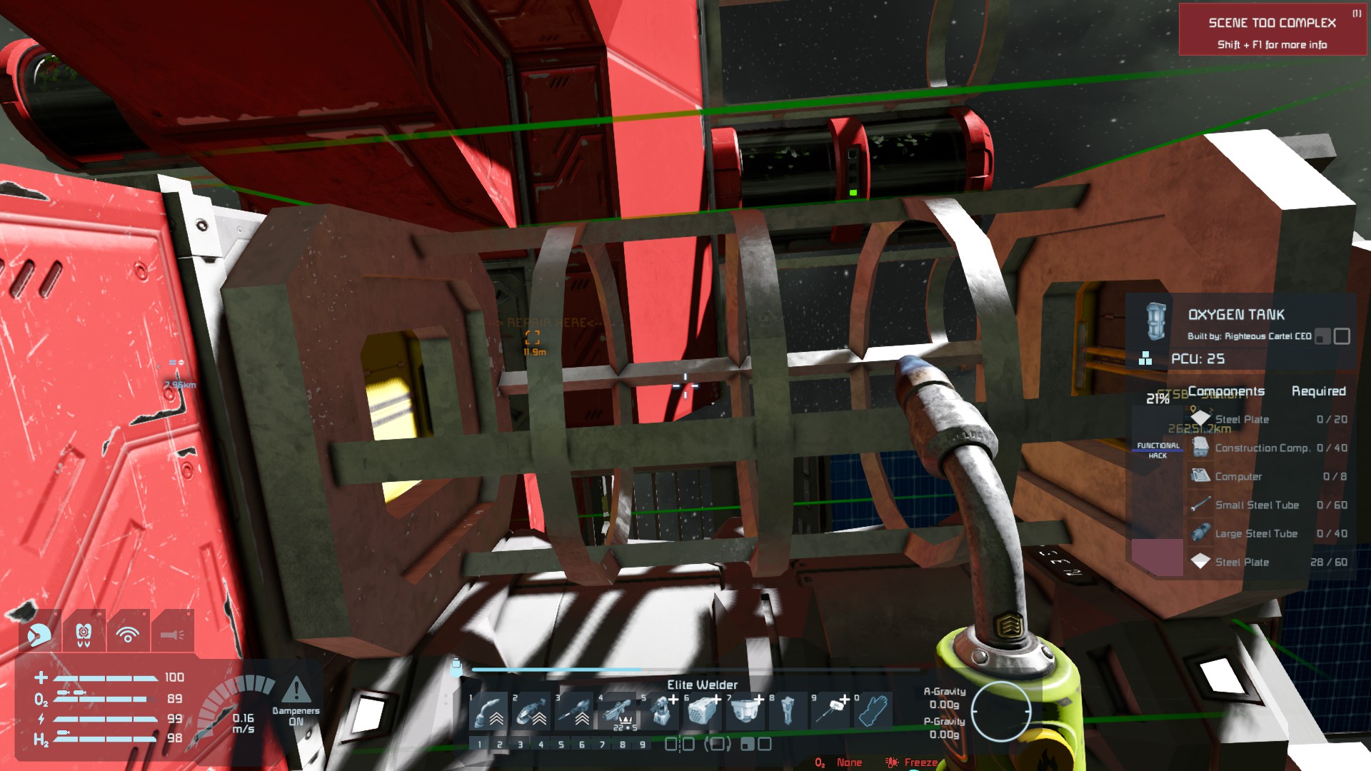 3133 and 3358 are the before/after of an oxygen tank I attempted to repair. 3358 also shows the maximum health I could repair using the Elite welder.