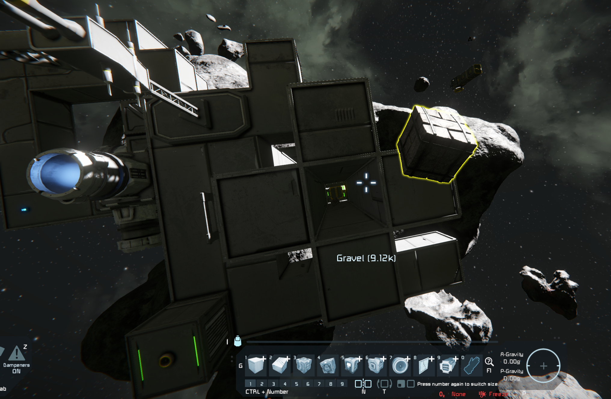 After welding a projected rocket, A conveyor drains gravel into it. This rocket then disconnects itself using an event controller and a timer, blasts off, and is completely destroyed when it hits an asteroid. Some amount of the time, the gravel within those containers teleports back to where the rocket was printed and loaded, but starts off at the same heading and velocity that the rocket was going the instant before it was destroyed, causing problems when it fouls up nearby grids or the next rocket in the sequence.