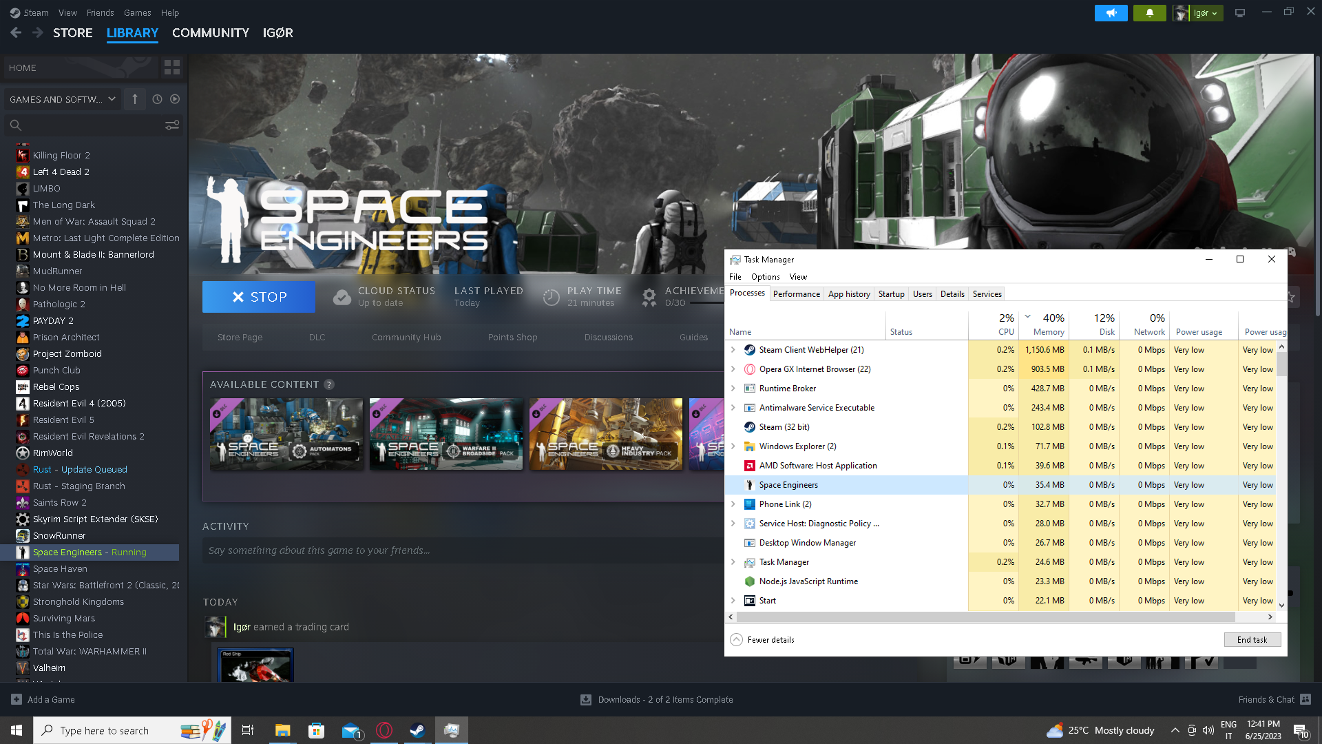 2023-06-25 12:29:26.419 - Thread: 1 -> Environment.CurrentDirectory: C:\Program Files (x86)\Steam\steamapps\common\SpaceEngineers\Bin64