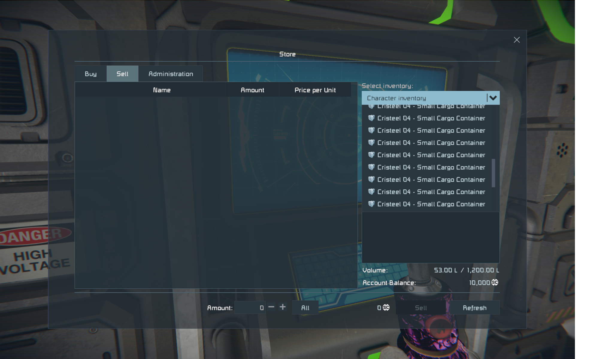 Drop-down menu for ship cargo in NPC station store has a bug