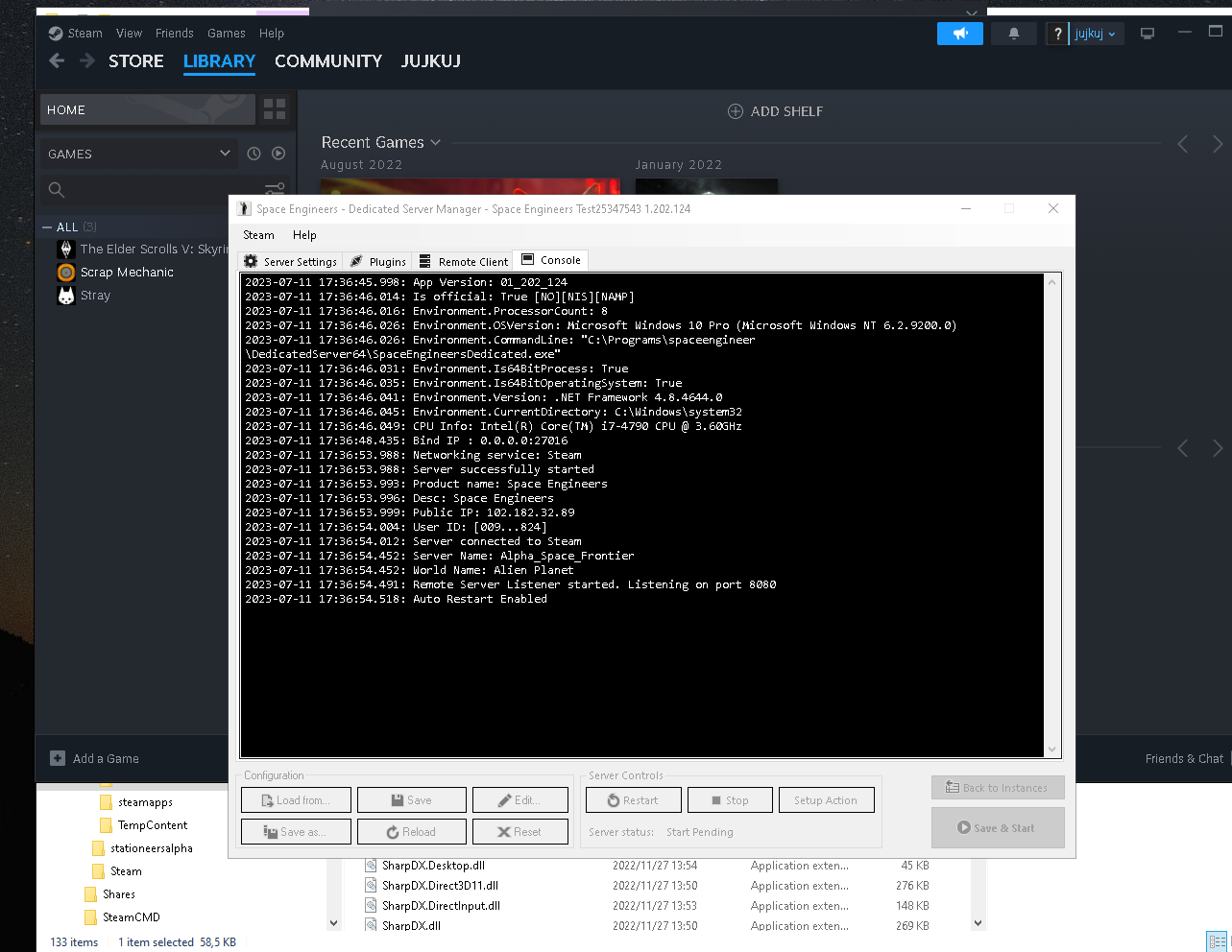 Or mimic a space engineer copy on the steam account on my server PC. I could of Course buy a copy and install it on the server PC hopping it would resolve my issue. It kind of feels defeating the object of having an independent Dedicated server so I am not “Keen”, to go that why. Pun intended.
