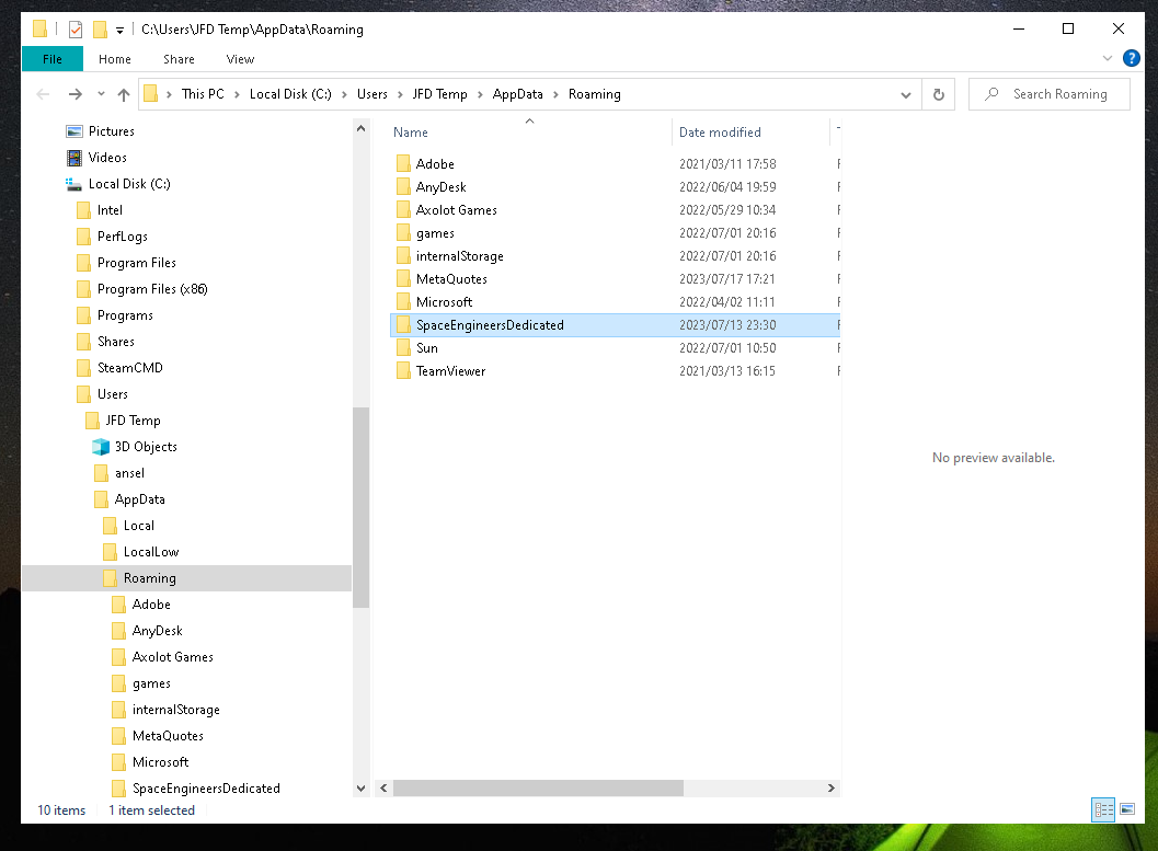 The PC that I use to run my game servers does not have Space Engineers installed in the steam account. (Wife’s Account). Space Engineers is installed on my PC only.