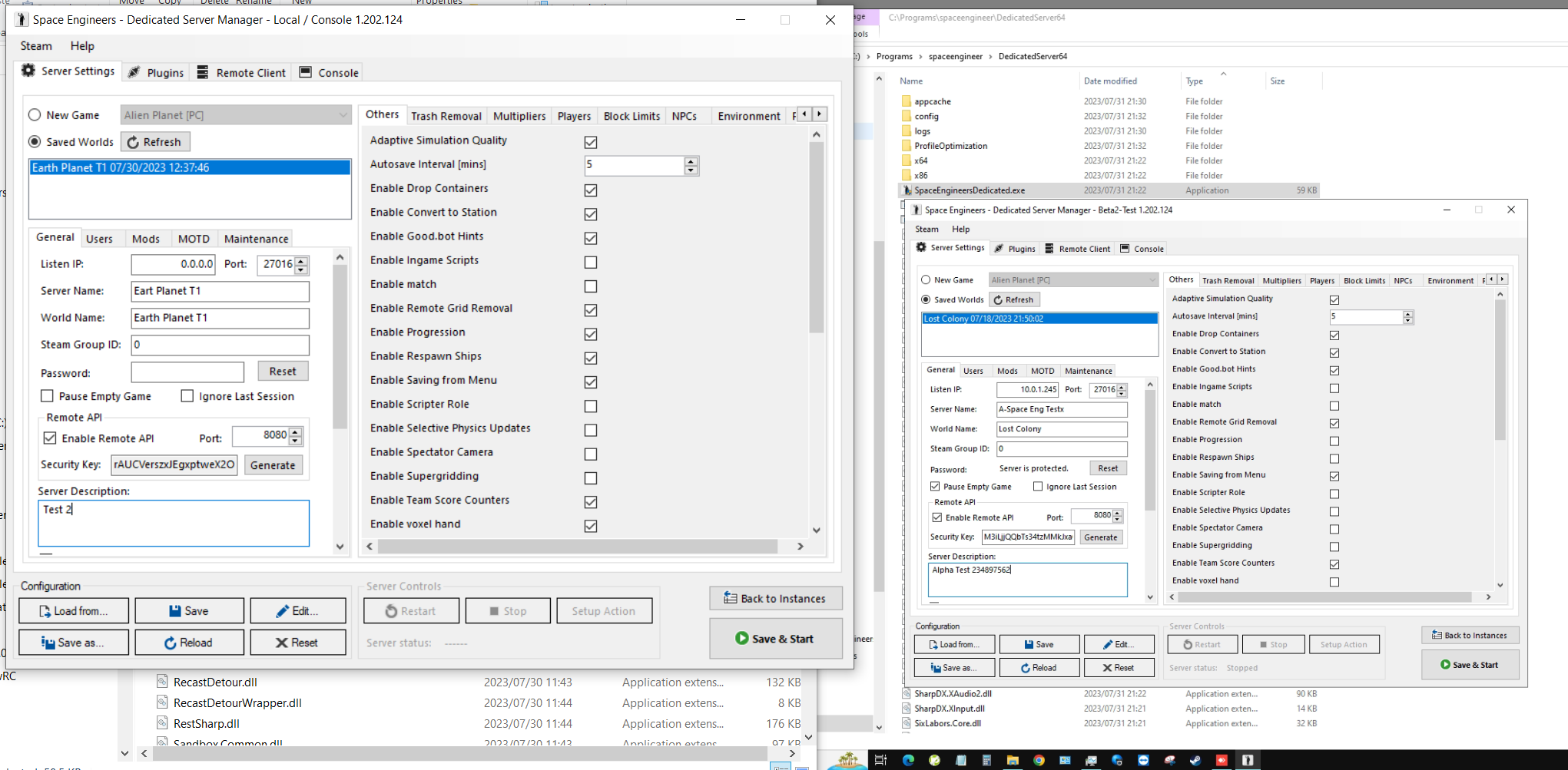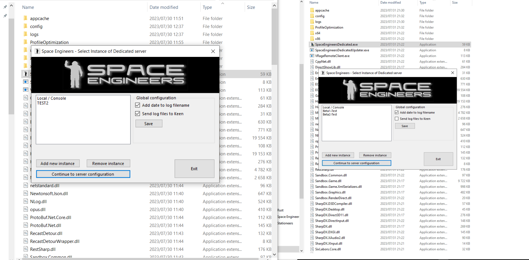 Now if you look at picture no.3 you will see the server started fine on the left PC but does not on the right hand PC. Only Difference so far is the right hand pc does not have a copy of Space engineers.