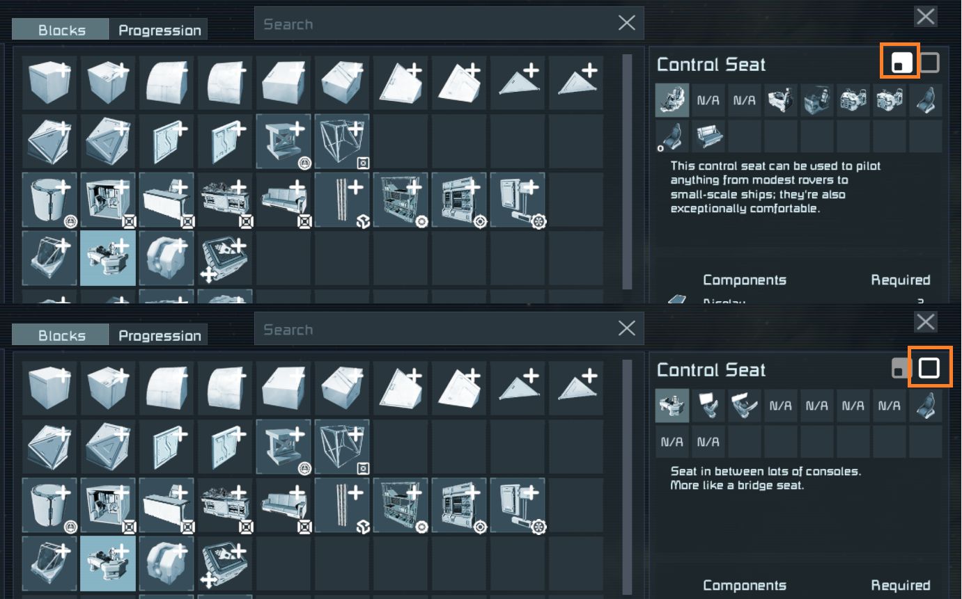 If yes, that is not a bug, but rather new feature. If you take a closer look, you can see that the N/A icon is present on blocks that are not available in the currently set grid size (large/small). See my image. If you switch the grid size using the highlighted button, the available blocks also change so you know what blocks you can use in game on the given grid size.