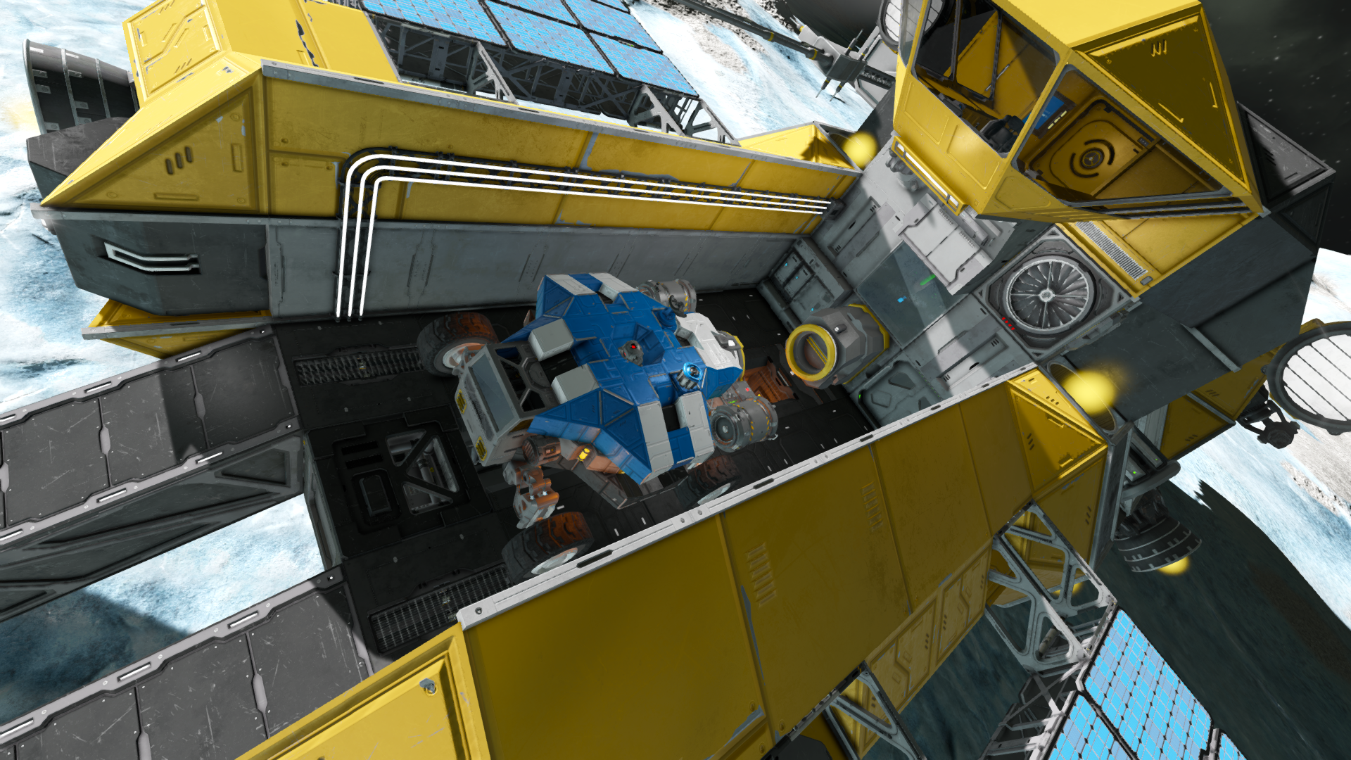 iv. Image attached shows the ship and the rover. There's nothing special to note with either builds, they are straight forward designs with no subgrids involved. Also the problem persists even with no mods loaded and scripts disabled.
