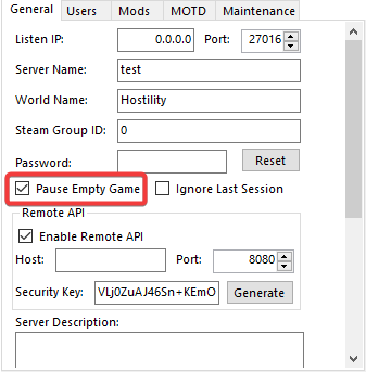 I have migrated a self hosted session to a dedicated server and tried to enable the "Pause when Empty" option but the game is running constantly regardless