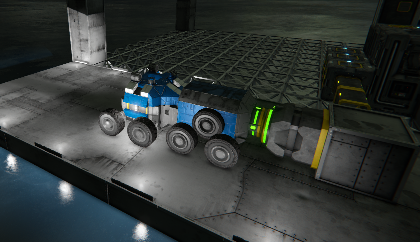I used the option Height Offset on the suspension blocks (with wheels) so the connectors are touching properly ("suspension height settings" screenshot; you need to set this the same value for all the suspension blocks). After that I was able to connect these grids properly and as expected ("car connected" screenshot).