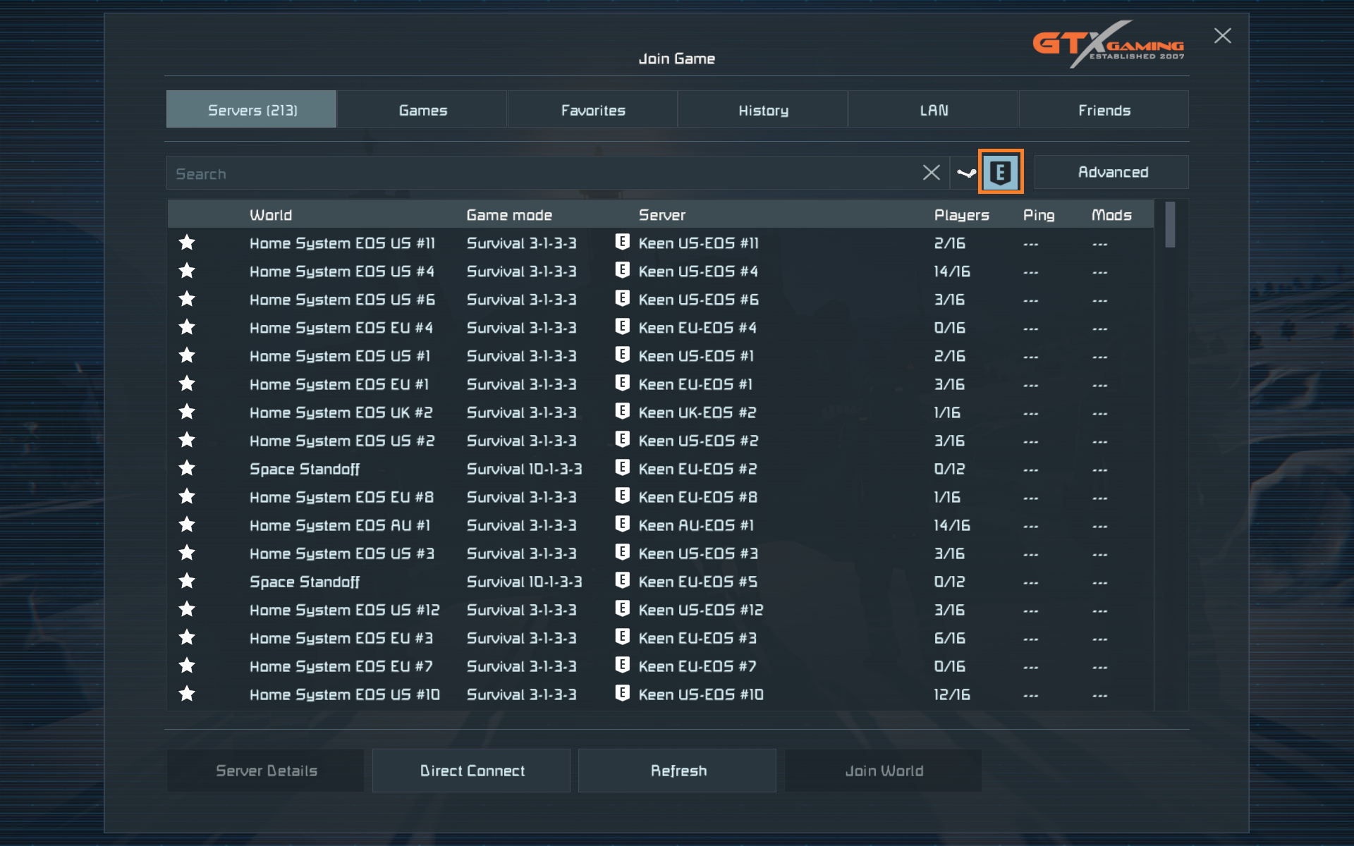 How does this menu looks for you, please, once you have selected the EOS networking type? Do you see there also some servers as shown on my image? And you are just not able to find the one that the friend is running? Or you do not see any servers there whatsoever?