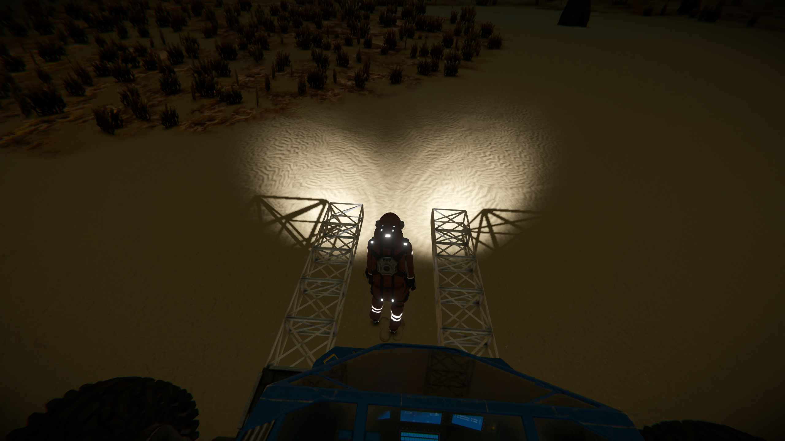 I found my lady engineer can barely move in a two block wide gap (1 meter) in a small grid. See attached picture. With much wriggling it is possible to move back and forth between the two booms, but being a lot more slender, she should be able to move easily.
