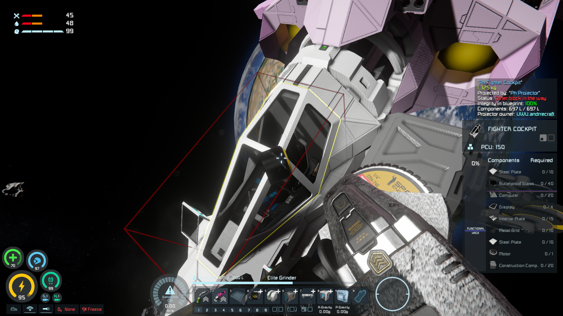 I have encountered with an issue that I like referring as "ghost blocks", or to be more precise, ghost sensors. I recently added a new mod that changes the HUD of cockpits, and with a new looking target system apparently, and I have seen a mine sensor, when I travelled to the sensor, its about two of them, that does not have an hitbox, but still appear in the game. I tried to cycle between any object in my world but it does not seem to appear there also. I am also attaching screenshots of the game for more visual information.