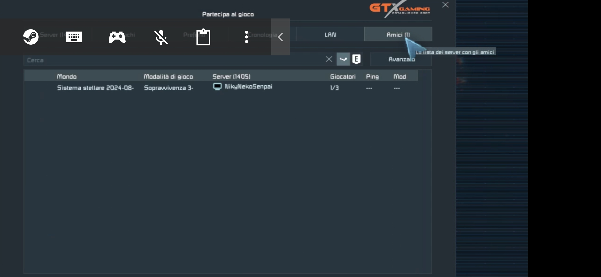 Hi, i select the sandbox mode i switch from offline to friends open game and then i start the game, leaving all other options standard. I also try to unlock the sperimental mode to see if it was trouble from that. I also activated mode.io then deactivated. I try first with planetary sandbox, then red spacecraft then pvp mode always the standard games, not the ones from community. Always i could not see her but if she start the game in the identical mode with identical options there was no problems. I not use 3rd party servers, me and her play on the same way: friends on steam, with GeForce now with tablet or smartphone with the same app updates. Unfortunately i try to gain access to the files on GeForce now but it's impossible: even to make a check for corruption files it's impossible: the game it's pre installed on Nvidia servers and could not be restored, modified, deleted or reinstalled. I try to disable the cloud steam saves, i try to uninstall the game from the steam app o try all the way possible. Basically it's a steam os running on could without privilege of access to files that are delocated in a virtual machine. The only way could be through help on steam remove from library the game (i think losing the money for the license of the game) and then hope that buy again will not find again the old saved files. The only way i could solve the problem could be through the game application if would be some option. I will make a screenshot about the inline command i could maybe use. But i don't know if could work. I suspect that the time i kicked her from the game there is a saved files that ban her even if i deleted all backups and other stuff