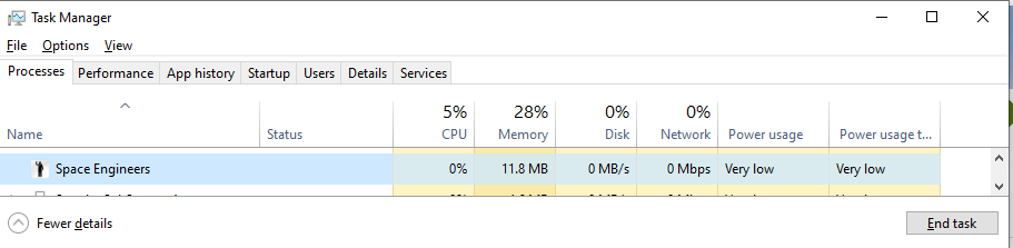 When I launch the game through Steam nothing happens. A program does start and I can see it in the Task Manager but it does nothing happens, even if I let it go all day, and I can't even kill it with the Task Manager. I get no error message from Steam or that is generated from the Event Viewer. I have tried several suggestions including deleting the config file, disabling the intro, updating video drivers, reinstalling Space Engineers and reinstalling Steam.
