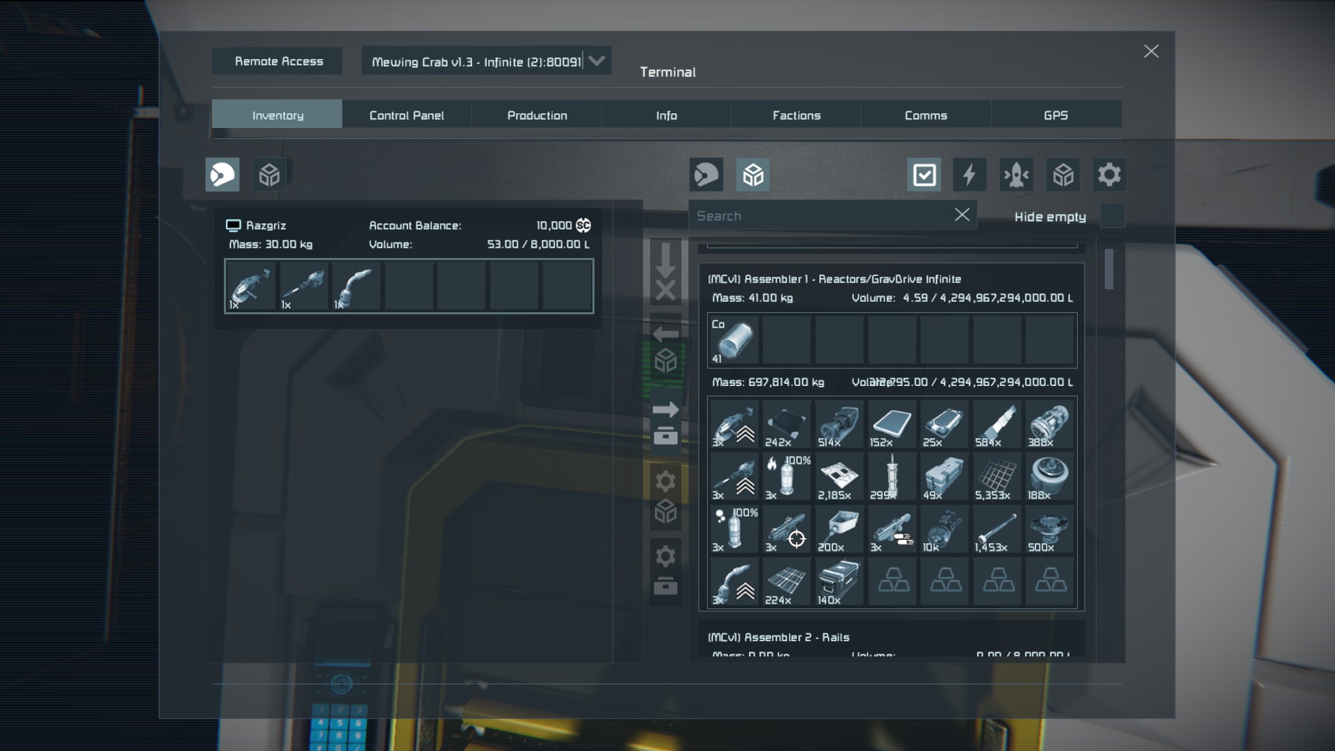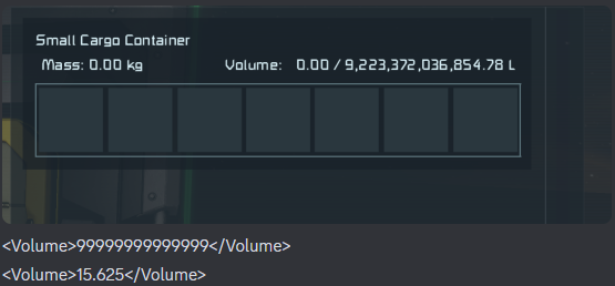 Does the blueprint retain the cargo volume after being copied or a new blueprint is created from it? If so, could you please share the blueprint with the infinite volume? You can access your blueprints files by typing %appdata% into your Windows search bar and you will be redirected to the hidden Roaming folder. After that just follow: \Roaming\SpaceEngineers\Blueprints. Select the correct folder where your blueprint is saved (local or cloud), zip the file and attach it here.