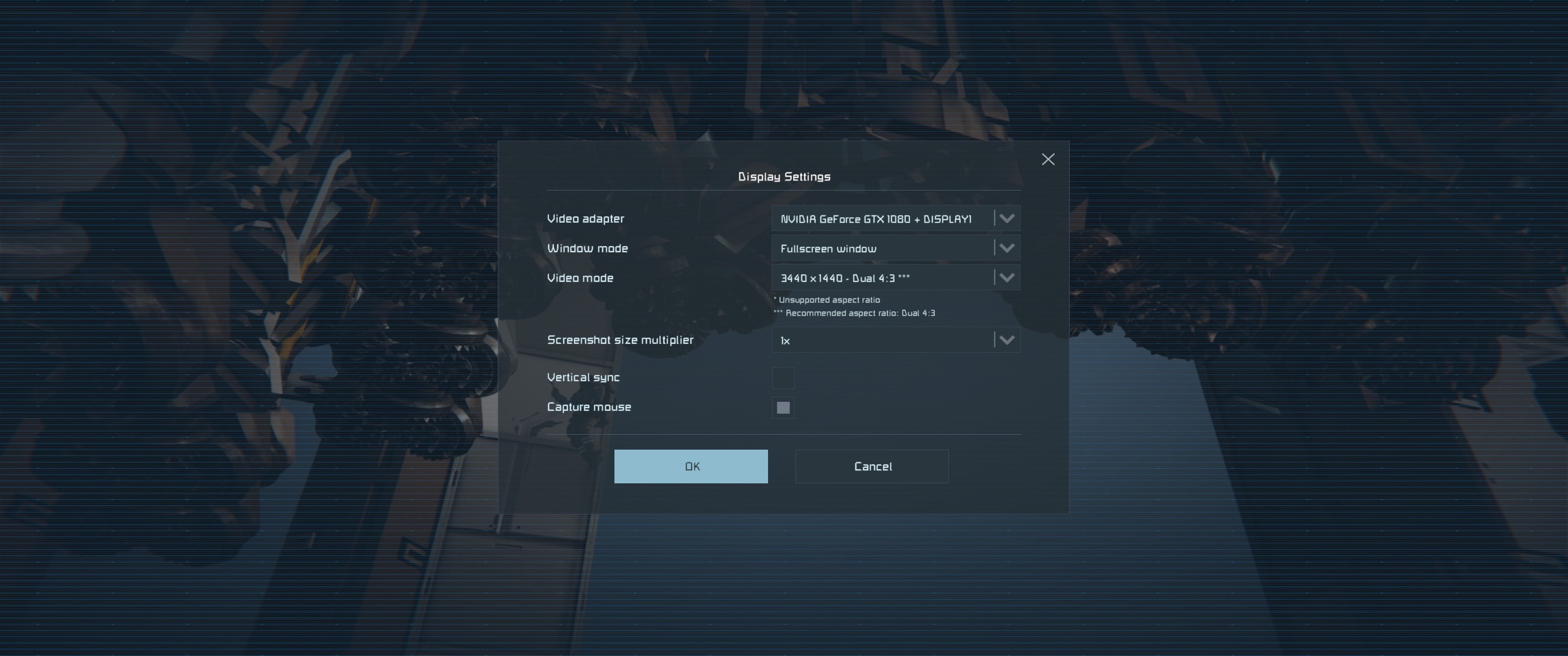 Launch the game and from the game's main menu, go to Options > Display > in the Video Adapter dropdown, select your dedicated graphics card. Also, uncheck the Vertical Sync box if its enabled/checked. Ensure that the Video Mode resolution shows *** (recommended aspect ratio). If not, select the recommended resolution from the list and click OK to save.